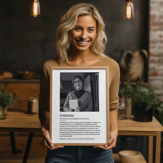 Unsere personalisierten Produkte lassen sich einfach gestalten. Du kannst Namen, Berufstitel oder spezielle Botschaften hinzufügen, um das Geschenk noch individueller zu machen. Beispielsweise kannst du ein Poster für Polizistinnen oder ein Definitionsposter für medizinische Fachangestellte erstellen lassen. Diese persönlichen Details machen das Geschenk unvergesslich.