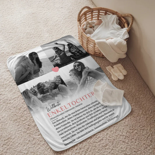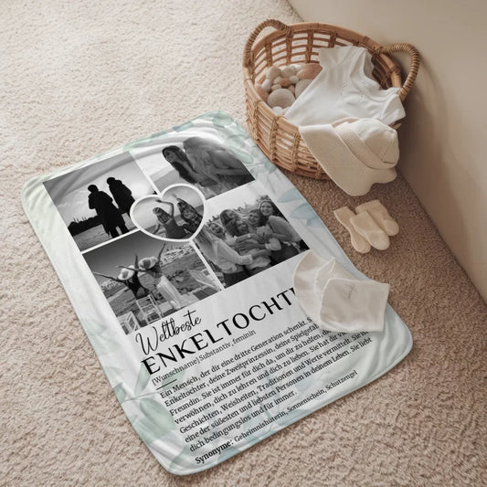Überrasche deine Enkel mit personalisierte Tassen für Enkelkinder oder personalisierte Decken, die Wärme und Liebe ausstrahlen. Diese praktischen Geschenke sind perfekt für den täglichen Gebrauch und bringen ein Lächeln auf die Gesichter deiner Enkel.