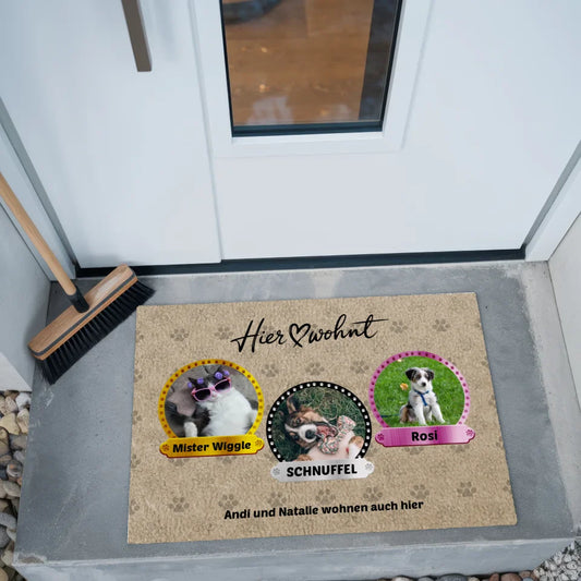 - Personalisierte Fußmatte – Hier wohnt Katzen & Hunde mit Name & Foto