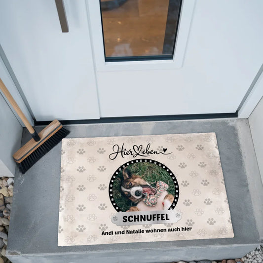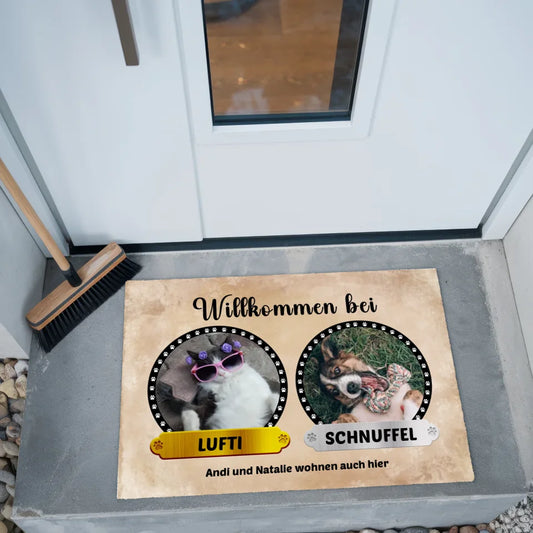 - Personalisierte Fußmatte – Hier wohnt Katzen & Hunde mit Name & Foto