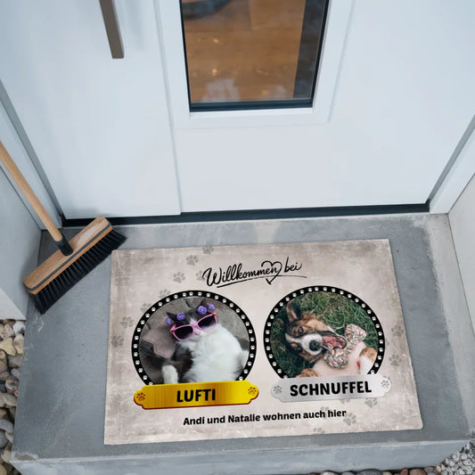- Personalisierte Fußmatte – Hier wohnt Katzen & Hunde mit Name & Foto