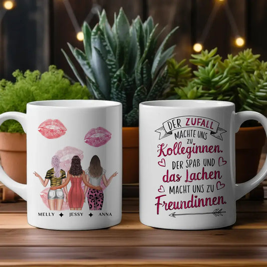 - Personalisierte Tasse: „Zufall machte uns zu Kolleginnen – Abschied“