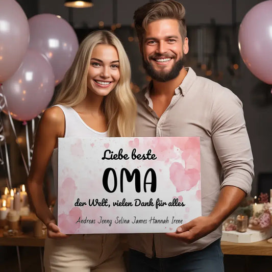 Feiere den besonderen Tag deiner Oma mit unseren Oma Geburtstag Geschenke. Von personalisierten Postern zum 70. Geburtstag bis hin zu individuellen Leinwänden für den 60. Geburtstag – wir haben für jeden Anlass das passende Geschenk. Schau dir unsere Bestseller wie das persönliches Poster zum 90. Geburtstag an und finde das perfekte Geschenk, das deine Oma lieben wird.