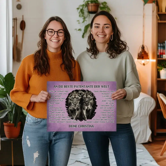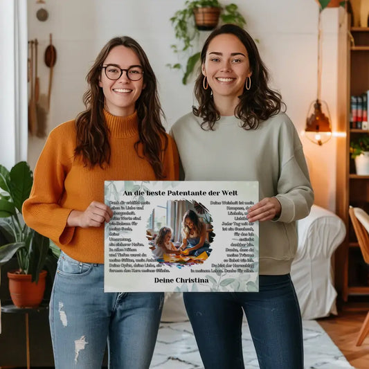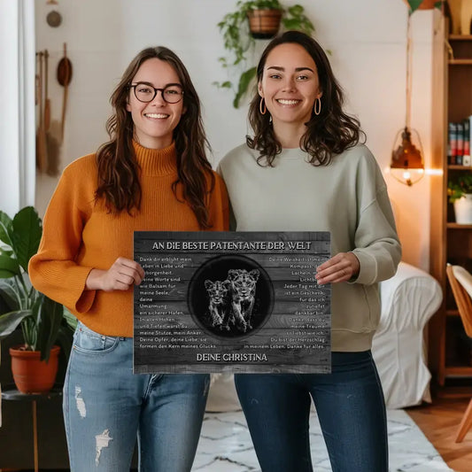 Unsere personalisierten Leinwandbilder für Patentante sind ein Highlight in jeder Sammlung. Sie bieten eine hochwertige Darstellung von Fotos und eignen sich hervorragend als dekoratives Element.