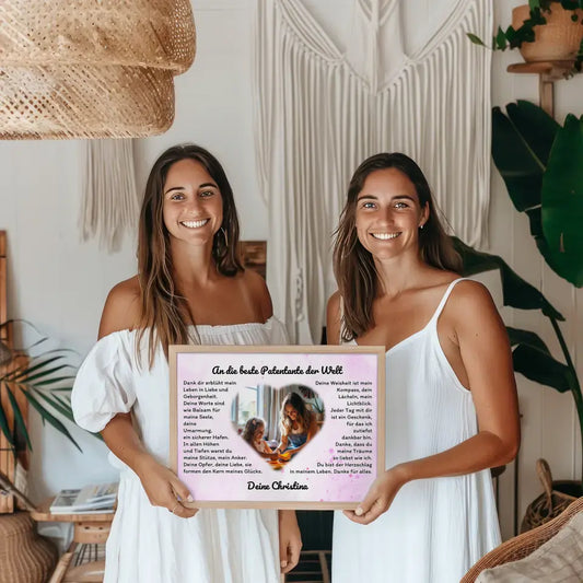 Unsere personalisierten Poster für Patentante sind perfekte Dekorationen für Zuhause. Ob als Fotocollage oder mit einem liebevollen Text – diese Poster sind eine wunderbare Erinnerung.