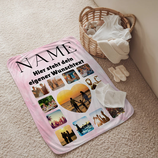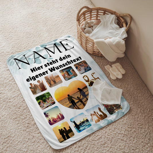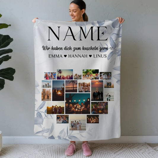 Unsere personalisierte Familiendecke ist ideal, um Familienmomente festzuhalten. Mit mehreren Fotos und Namen können Sie eine Decke schaffen, die die Bindung und Liebe innerhalb der Familie symbolisiert. Perfekt als Geschenk für Eltern, Großeltern oder Geschwister.