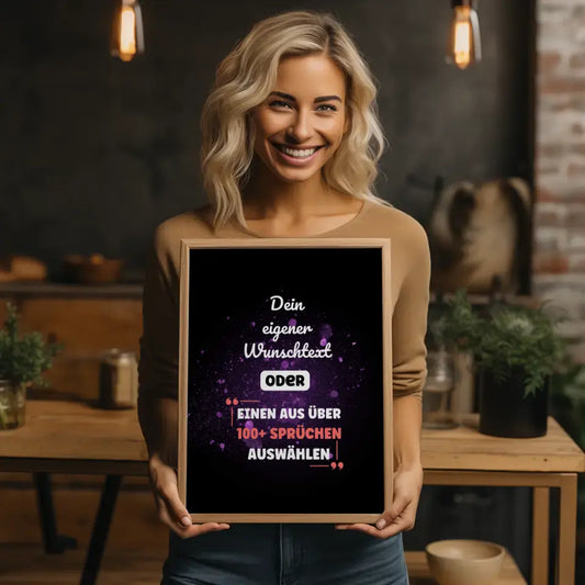 Mit unserem einfachen Online-Tool kannst du dein eigenes personalisiertes Poster gestalten. Wähle aus verschiedenen Hintergründen wie lila Herz, helle Wand oder altes Papier und füge deinen Wunschtext hinzu. Schau dir unsere beliebten Designs wie das lila Herz Poster oder das Blumenkreis Poster an.