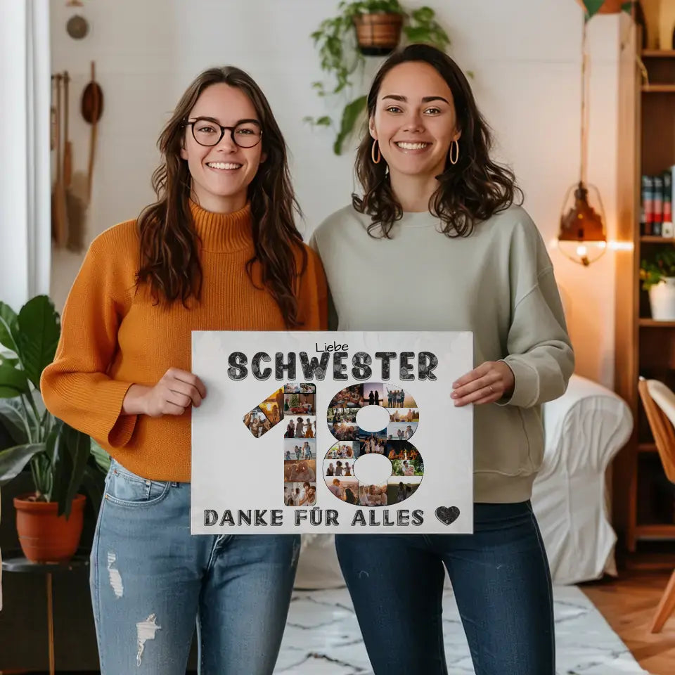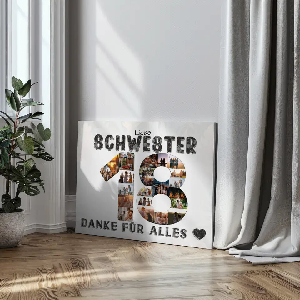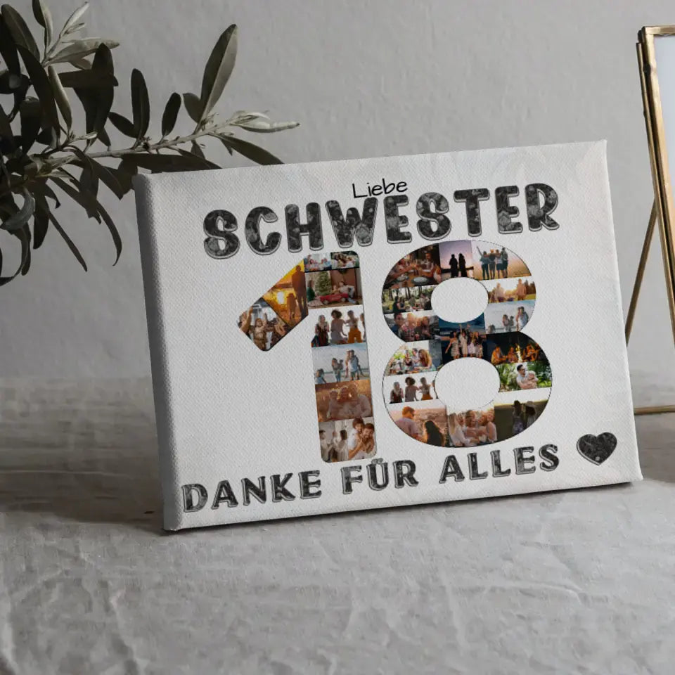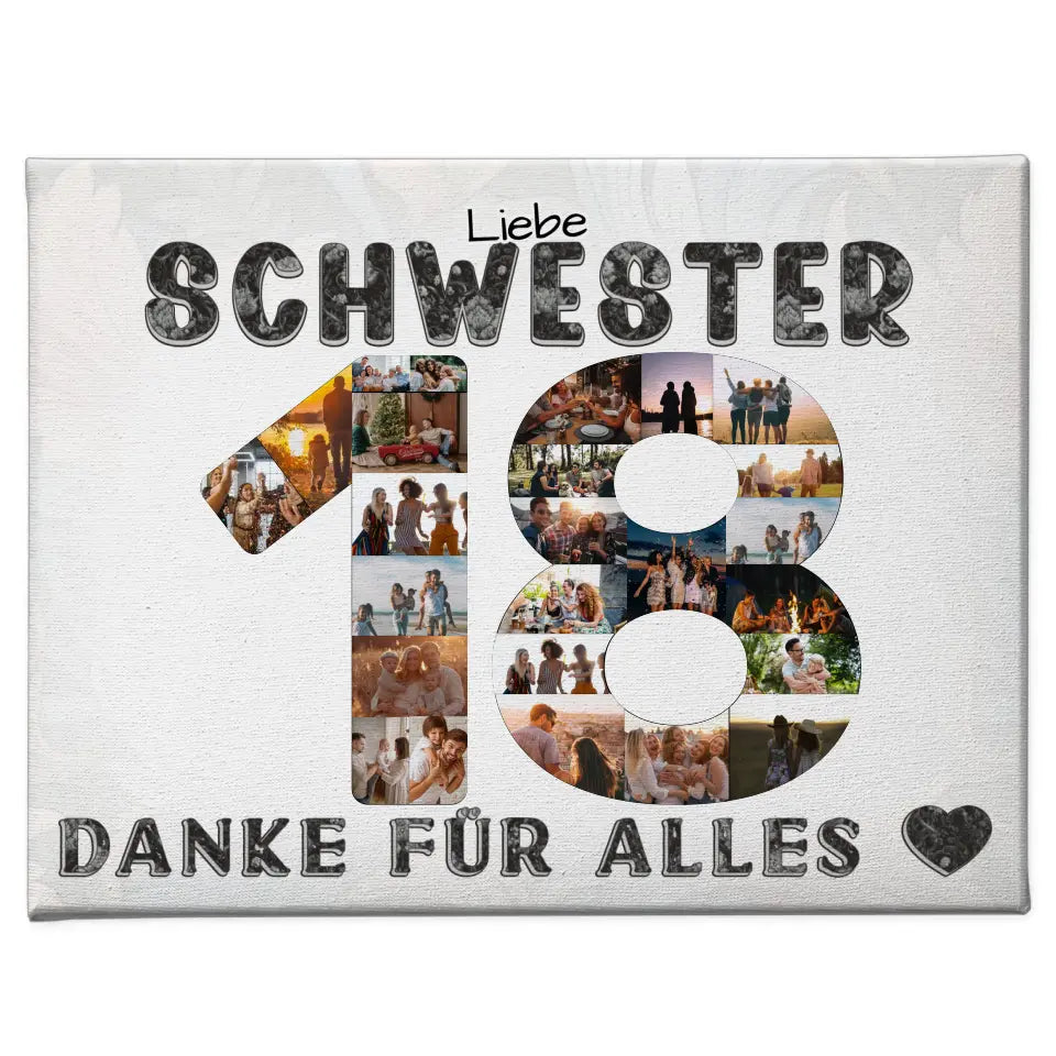 18 Geburtstag Personalisierte Leinwand für Schwester Fotocollage