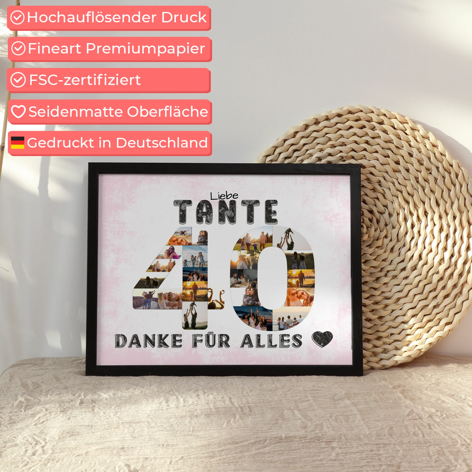 40 Geburtstag Poster Geschenk Tante Danke für Alles Fotocollage