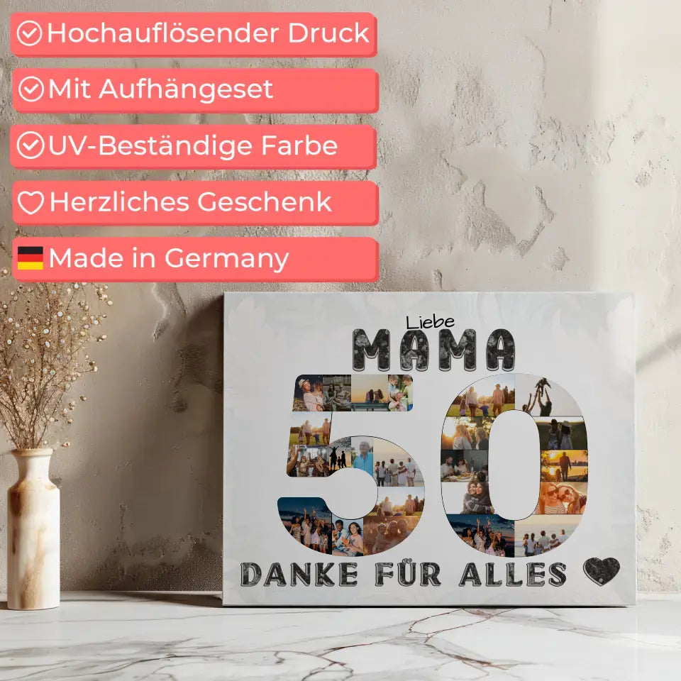 50 Geburtstag Leinwand Geschenk Mama Danke für Alles Fotocollage