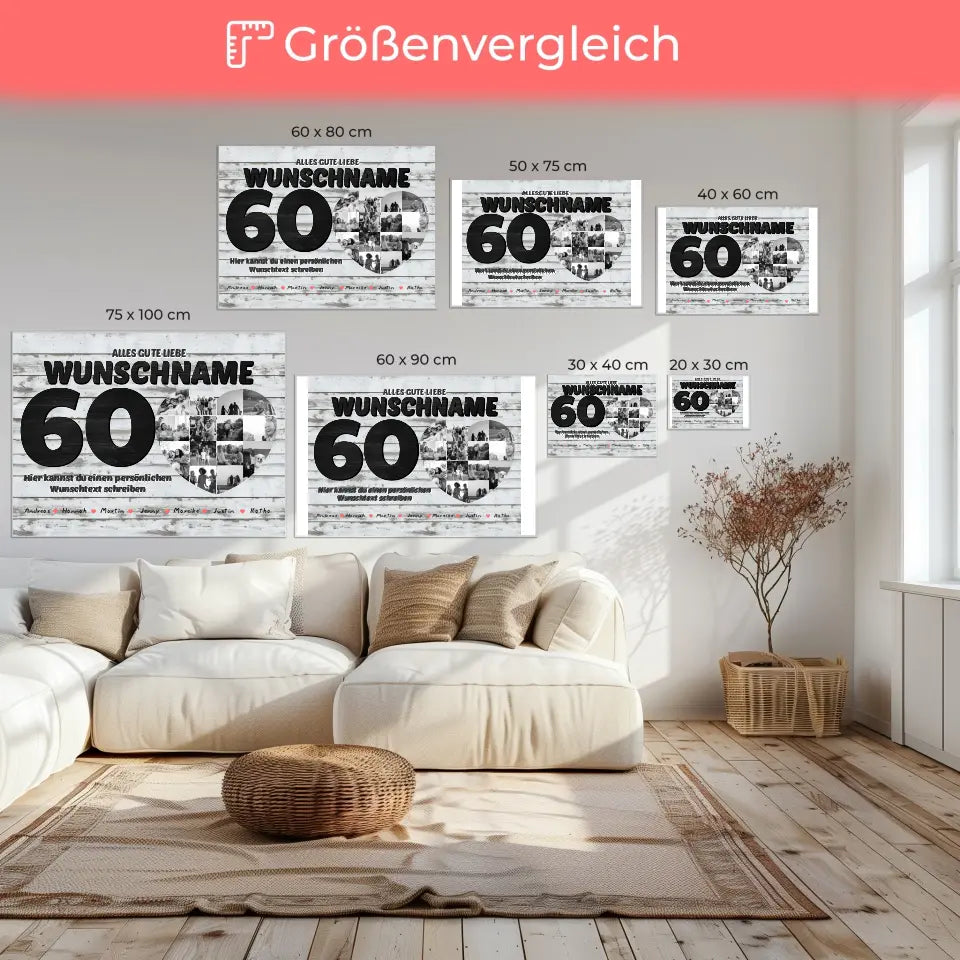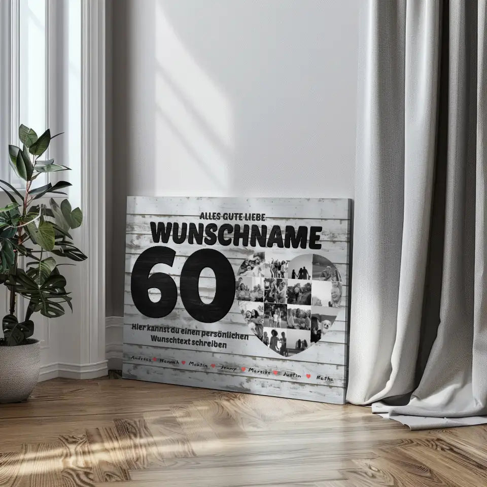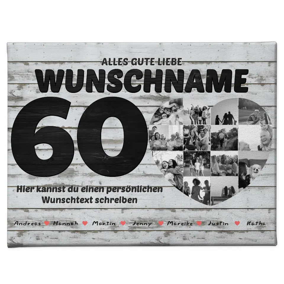 60 Geburstag Fotocollage mit Wunschtext und Bis 15 Namen
