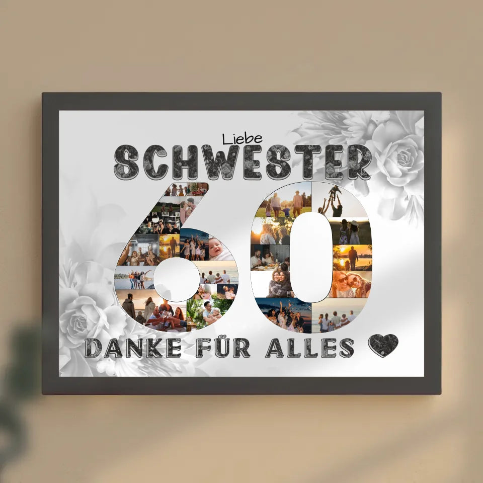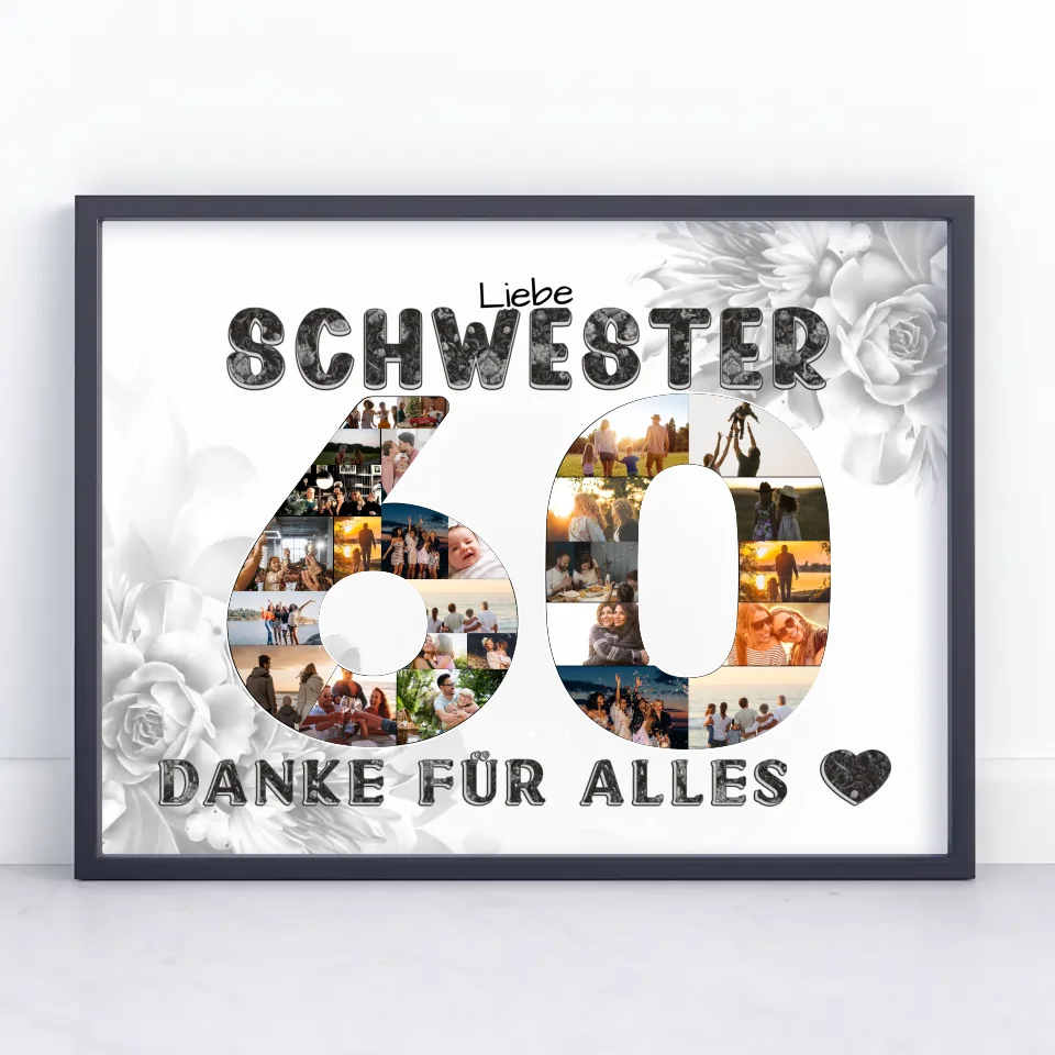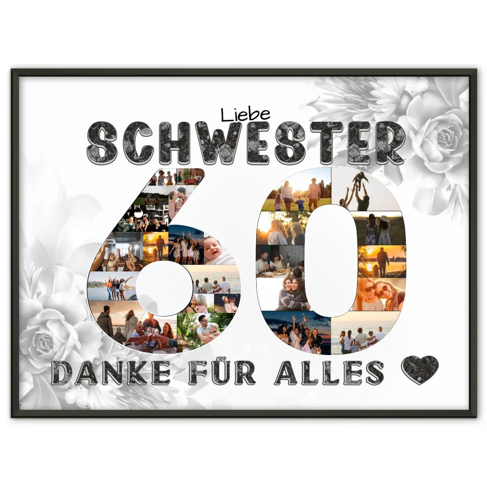 Unser 60 Geburtstag Geschenk für Schwester Personalisiertes Poster