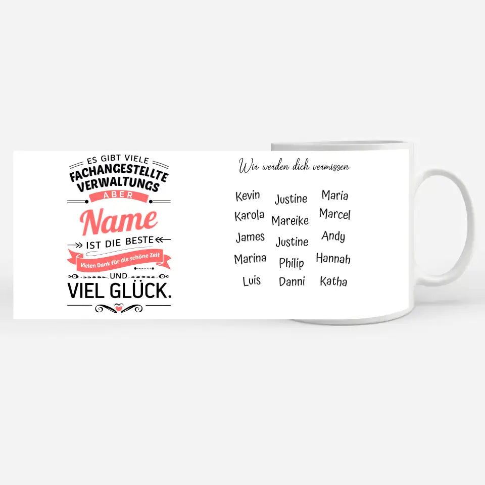 Abschied Geschenk Tasse für Verwaltungsfachangestellten mit Name