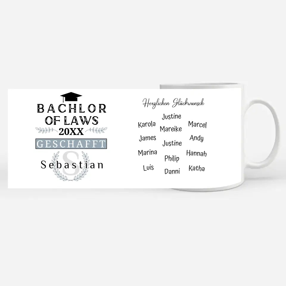 Abschluss Tasse Geschenk Bachlor of Laws mit Name Studium
