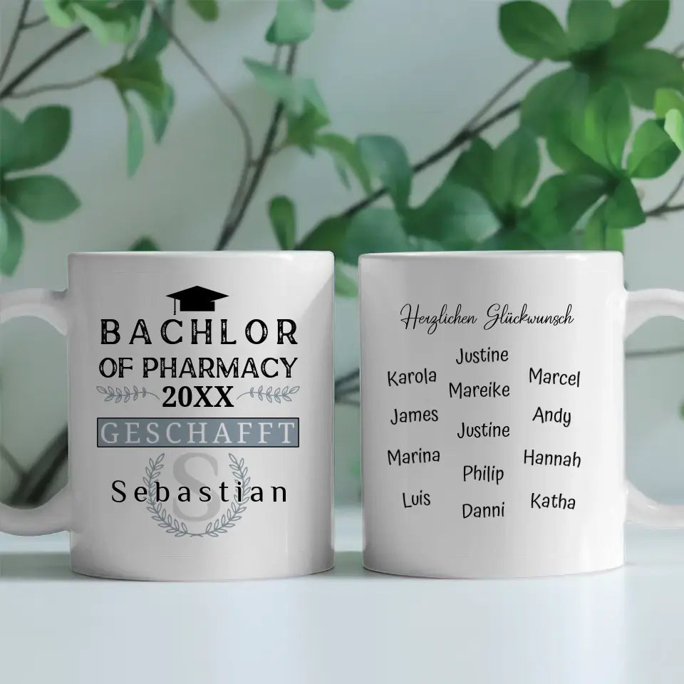 Abschluss Tasse Geschenk Bachlor of Pharmacy mit Name Studium