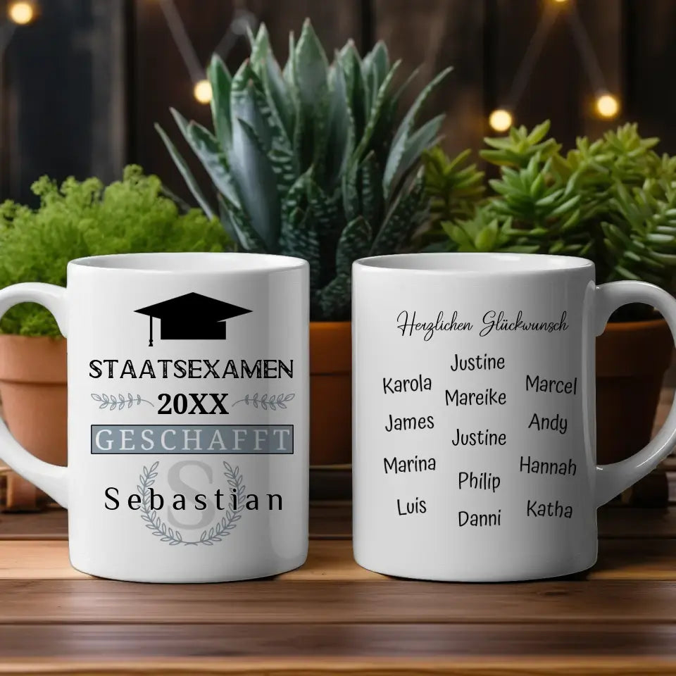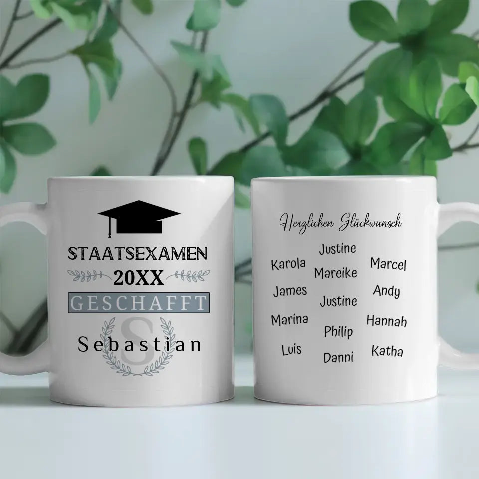 Abschluss Tasse Staatsexamen mit Name Blau Grau