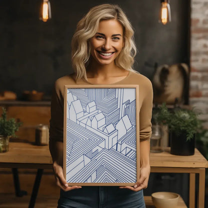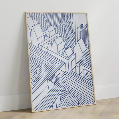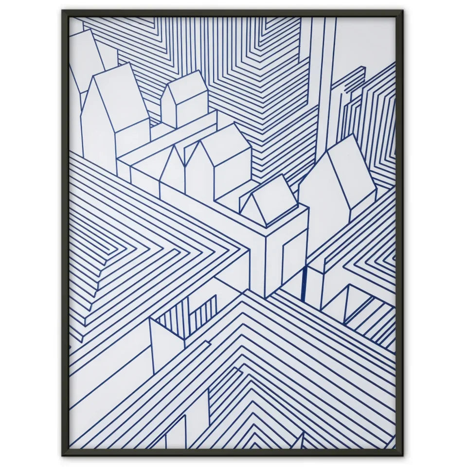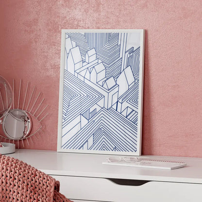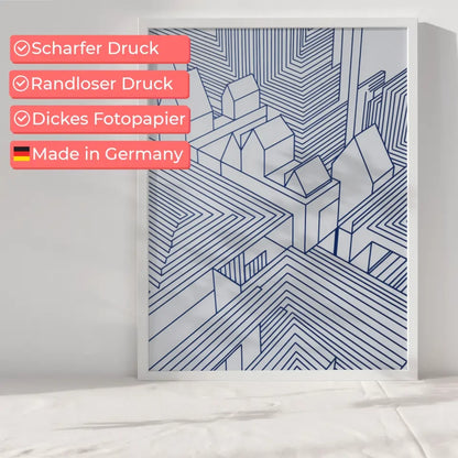 Entdecken Sie unser einzigartiges Abstrakte Architektur Poster in Blau und Weiß, das speziell für moderne Räume entworfen wurde. Dieses eindrucksvolle Poster zeigt eine faszinierende Tuschezeichnung, die nicht nur als Wanddekoration dient, sondern auch als gesprächsanziehendes Kunstwerk in Ihrem Zuhause fungiert. Die blauen Umrisse der weißen Häuser in der Darstellung schaffen einen harmonischen Kontrast und verleihen Ihrem Raum eine stilvolle Note.