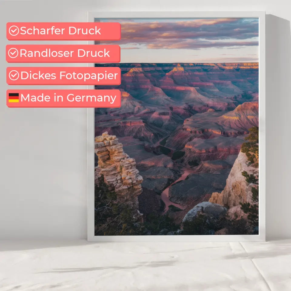 Wir versuchen immer, Euch einen guten Preis für eine top Qualität und eine große Produktvielfalt zu präsentieren. Deshalb setzten wir auf ein hoch entwickeltes Druckverfahren, um Euch nicht nur Poster und Leinwände, sondern auch Fotoboards, Acrylbilder, Holzbilder, Tassen und vieles mehr anbieten können.