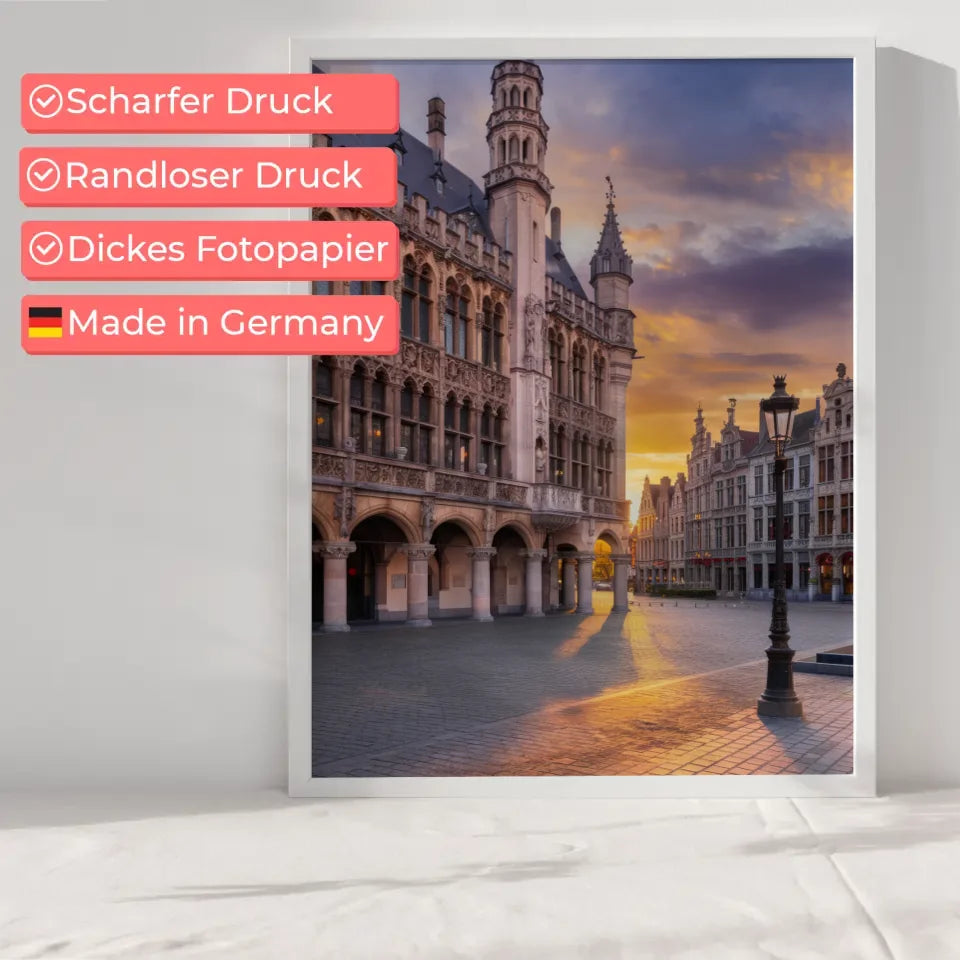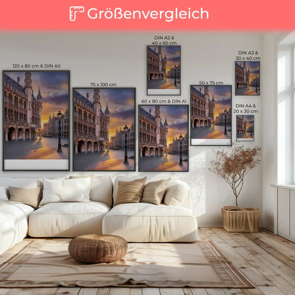 Ob klassisch oder modern – dieses Poster lässt sich mühelos in jedes Einrichtungskonzept integrieren. Es ist das ideale Geschenk für belgische Kulturfans oder für jeden, der die charmante Atmosphäre dieser Stadt liebt. Mit dem Poster Grand Place Belgien bringen Sie ein Stück europäischer Geschichte in Ihre eigenen vier Wände.