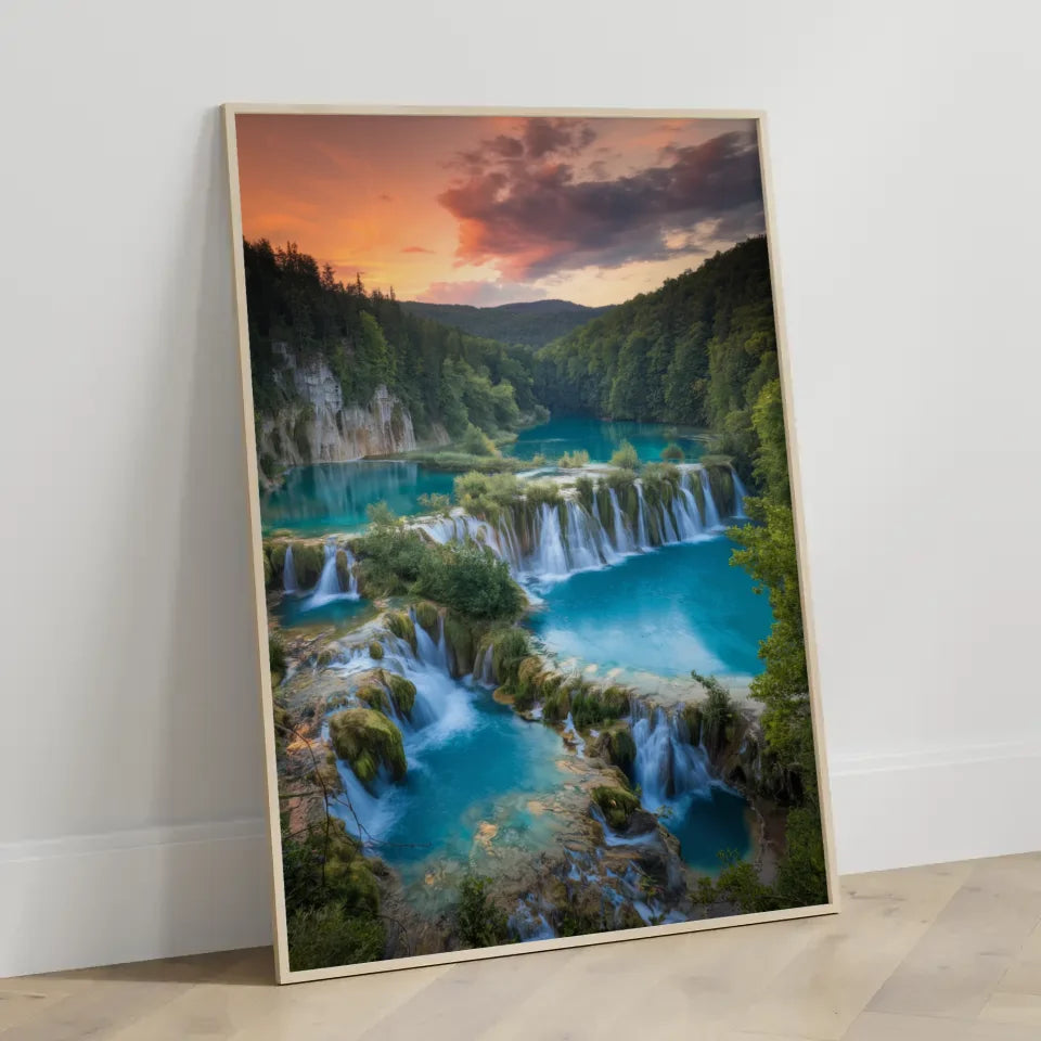Unser Poster Plitvicer Seen Kroatien Golden Hour ist in verschiedenen Größen erhältlich und eignet sich perfekt für die Wandgestaltung in Wohnräumen, Büros oder als Geschenk für Natur- und Reisebegeisterte. Lass dich von der Schönheit der kroatischen Landschaft inspirieren und wähle das ideale Poster für deine individuelle Einrichtung.