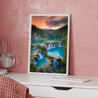 Das Poster zeigt die faszinierenden Farben und das ruhige Wasser der Seen, umgeben von der beeindruckenden Natur Kroatiens. Diese einzigartige Aufnahme wird nicht nur zum Blickfang in deinem Wohnzimmer, sondern bringt auch einen Hauch von Urlaub und Fernweh in jeden Raum.