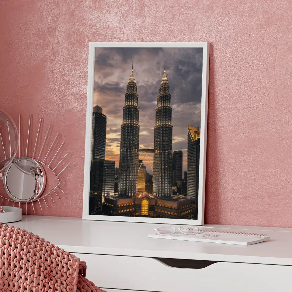 Poster von den Petronas Towers zur Golden Hour in Malaysia