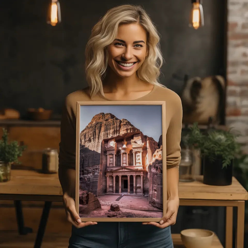 Ob im Wohnzimmer, Schlafzimmer oder im Arbeitszimmer – das Poster von Petra in Jordanien zur Golden Hour harmoniert mit verschiedenen Einrichtungsstilen und bringt einen Hauch von exotischer Eleganz in jeden Raum. Nutzen Sie die Möglichkeit, Ihre Wände individuell zu gestalten und eine eigene kleine Galerie zu schaffen. Kombinieren Sie das Poster mit weiteren Werken aus unserer Kollektion, um ein einzigartiges Ambiente zu schaffen.