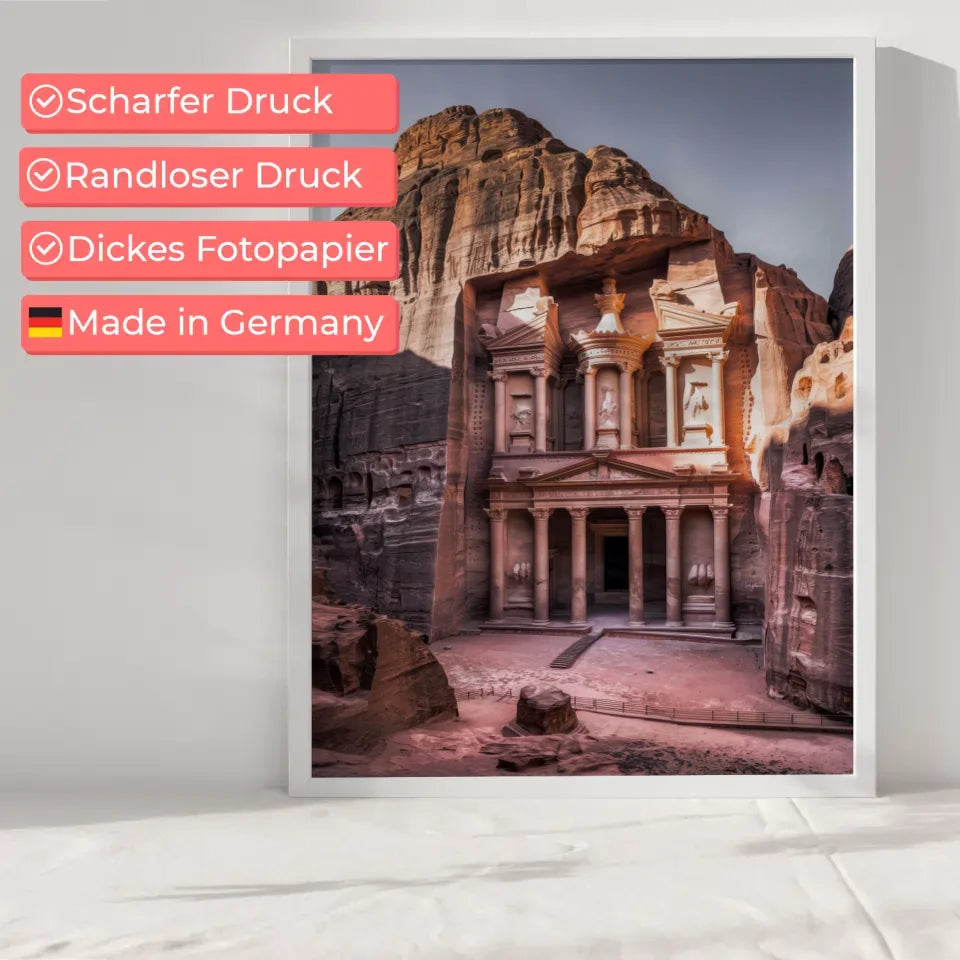 Lassen Sie sich von der zeitlosen Schönheit dieser historischen Stätte inspirieren und holen Sie sich das Poster von Petra in Jordanien zur Golden Hour in Ihr Zuhause. Bestellen Sie noch heute und verwandeln Sie Ihre Wände in ein Kunstwerk!
