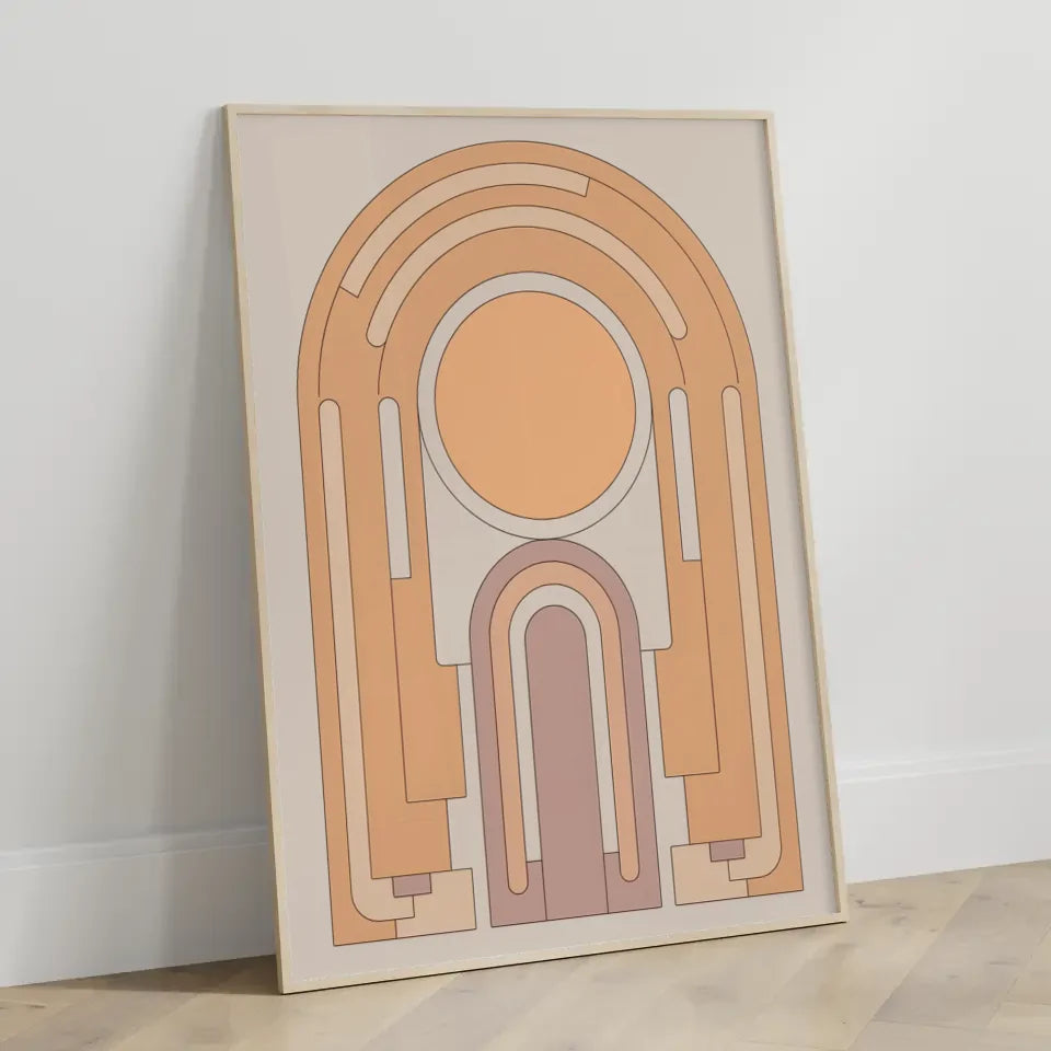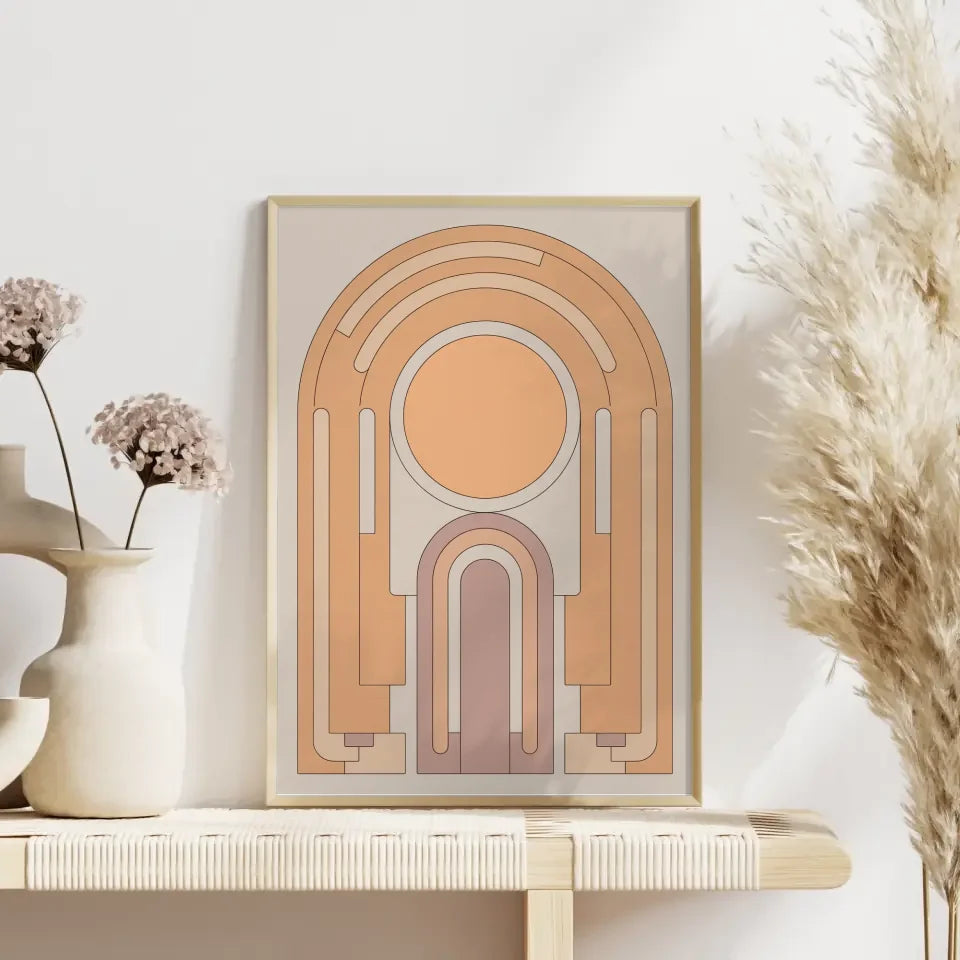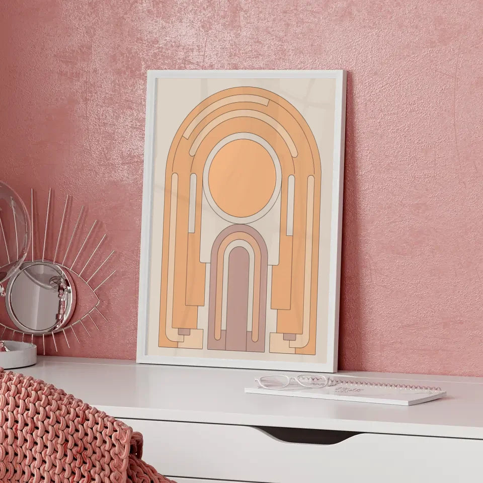 Bestellen Sie noch heute Ihren abstrakten Poster mit Kreisform in Pfirsich und geschwungenen Linien und erleben Sie, wie ein einfaches Wandbild den Charakter Ihrer Räume verändern kann.