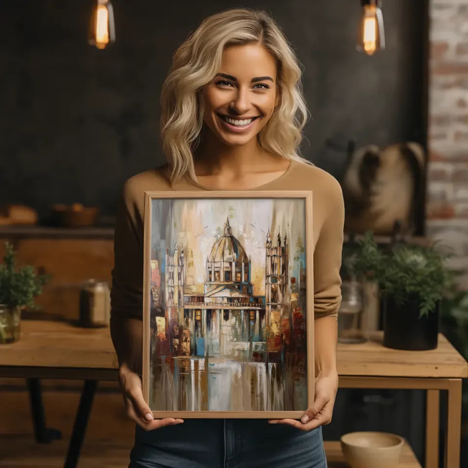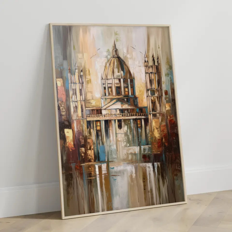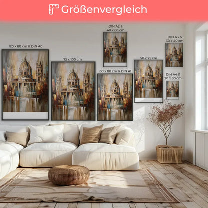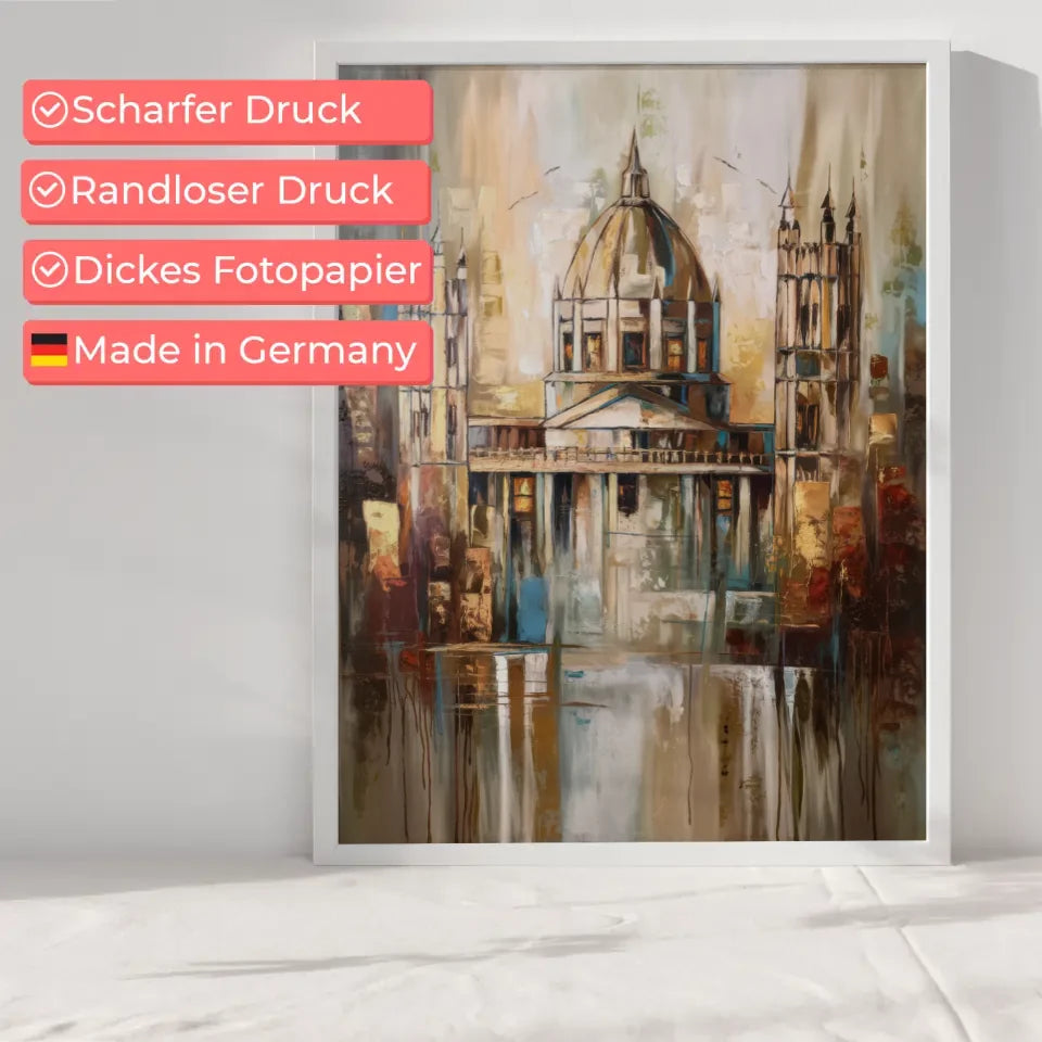 Entdecken Sie unser einzigartiges abstraktes Poster Canterbury Kunstwerk in warmen Erdtönen, das die spirituelle Essenz von Englands berühmter Pilgerstadt einfängt. Dieses beeindruckende Poster verbindet harmonisch Erdtöne, Blau- und Goldtöne und bietet eine meisterhafte Darstellung, die sowohl für Ihr Zuhause als auch für Ihr Büro perfekt geeignet ist. Die fließenden Pinselstriche schaffen ein Gefühl von Bewegung und Tiefe, das Betrachter in seinen Bann zieht. Darüber hinaus sind subtile Hinweise auf die beeindruckende Architektur von Canterbury in das Design eingewoben, was das Poster zu einem Gesprächsthema in jedem Raum macht. Die warme und einladende Atmosphäre dieses Kunstwerks lädt dazu ein, sich auf eine spirituelle Reise zu begeben und das reiche kulturelle Erbe von Canterbury zu erkunden. Bereichern Sie Ihre Wände mit diesem stilvollen Poster und lassen Sie die Schönheit der Abstraktion in Ihr Leben. Setzen Sie visuelle Akzente und genießen Sie das Zusammenspiel von Farben und Emotionen, das dieses Abstrakte Poster Canterbury Kunstwerk bietet.
