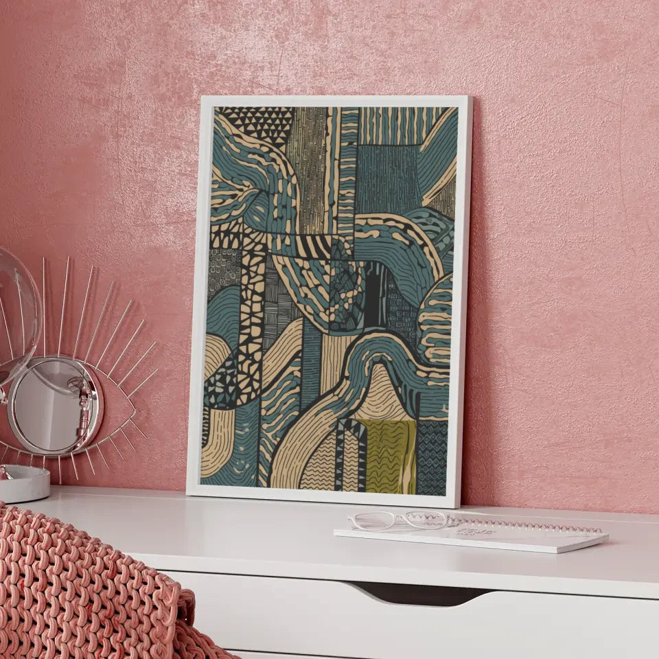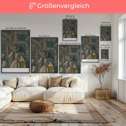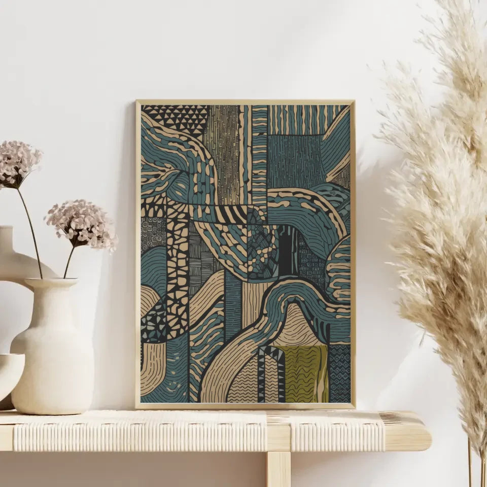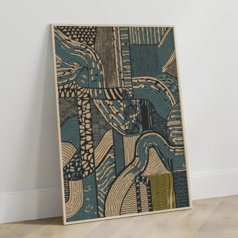 Abstraktes Poster mit lebendigem Muster in Blau und Grün für dein Zuhause