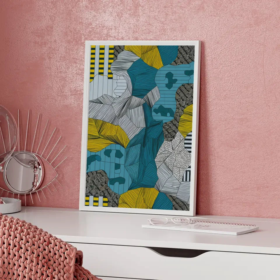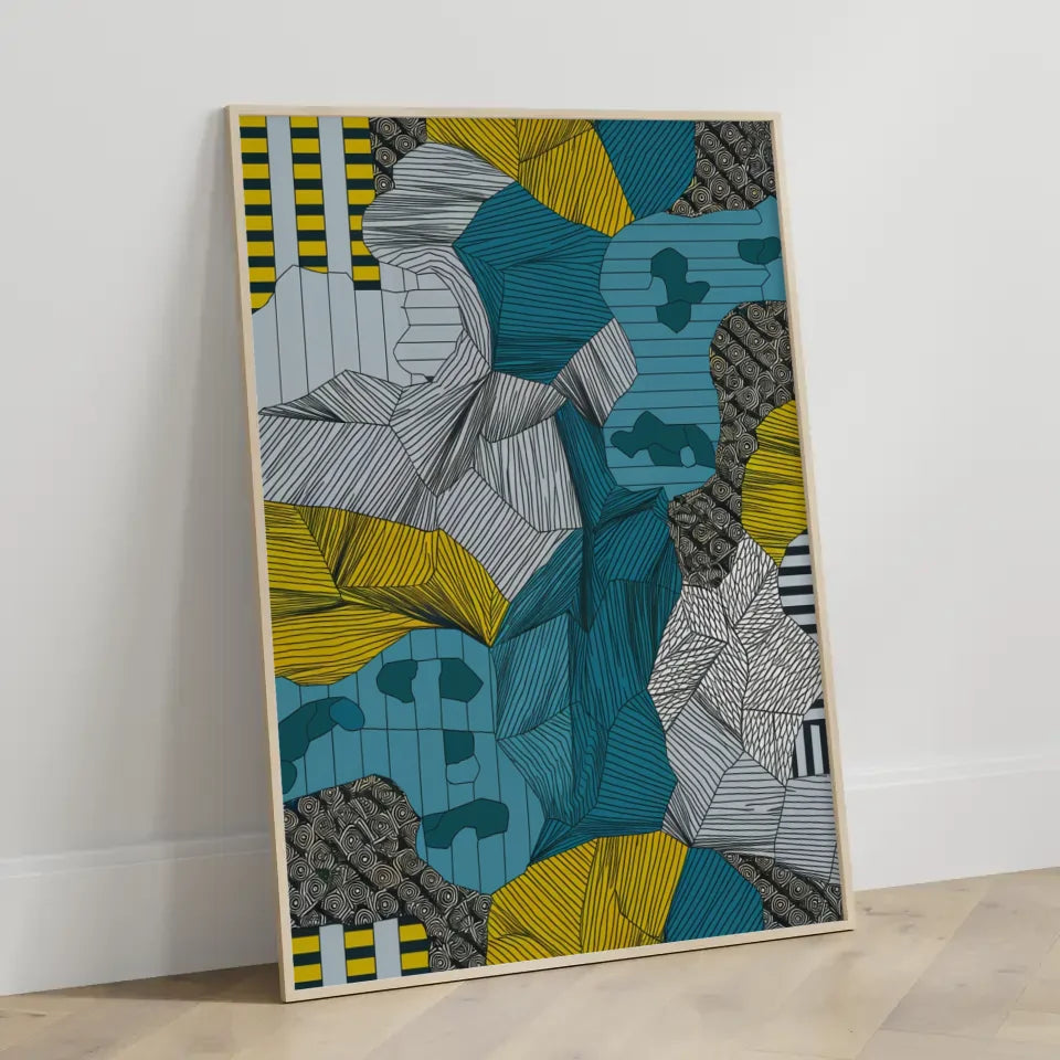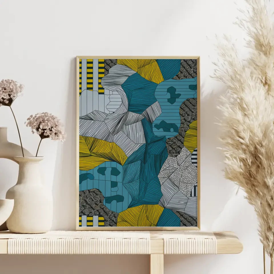 Abstraktes Poster mit lebendigem Muster in Blau und Grün für dein Zuhause