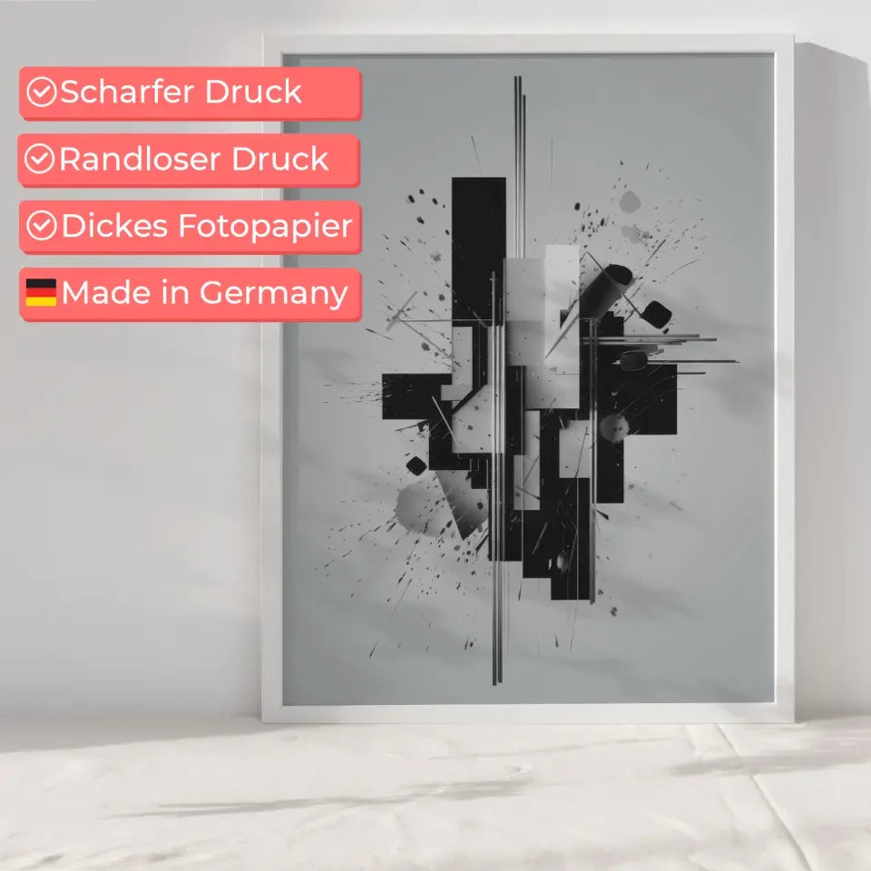 Entdecken Sie unser einzigartiges Poster, das mit einer faszinierenden abstrakten Komposition begeistert. Dieses Poster zeigt eine harmonische Anordnung von geometrischen Formen, wobei Rechtecke und Quadrate eine zentrale Rolle spielen. Die klaren Linien und die interessante Anordnung der Elemente verleihen dem Bild eine moderne Ästhetik, die in jeden Raum passt.