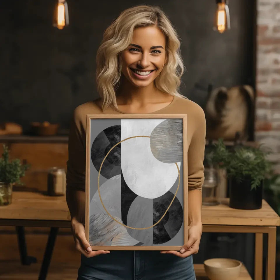 Bringen Sie Persönlichkeit und Stil in Ihr Zuhause mit diesem Abstrakten Poster, das sowohl zeitlos als auch modern ist. Jedes Detail dieses Posters wurde sorgfältig durchdacht, um eine einzigartige Atmosphäre zu schaffen, die Ihre Räume aufwertet. Warten Sie nicht länger und verwandeln Sie Ihre Wände mit diesem außergewöhnlichen Kunstwerk in eine Galerie der modernen Kunst.