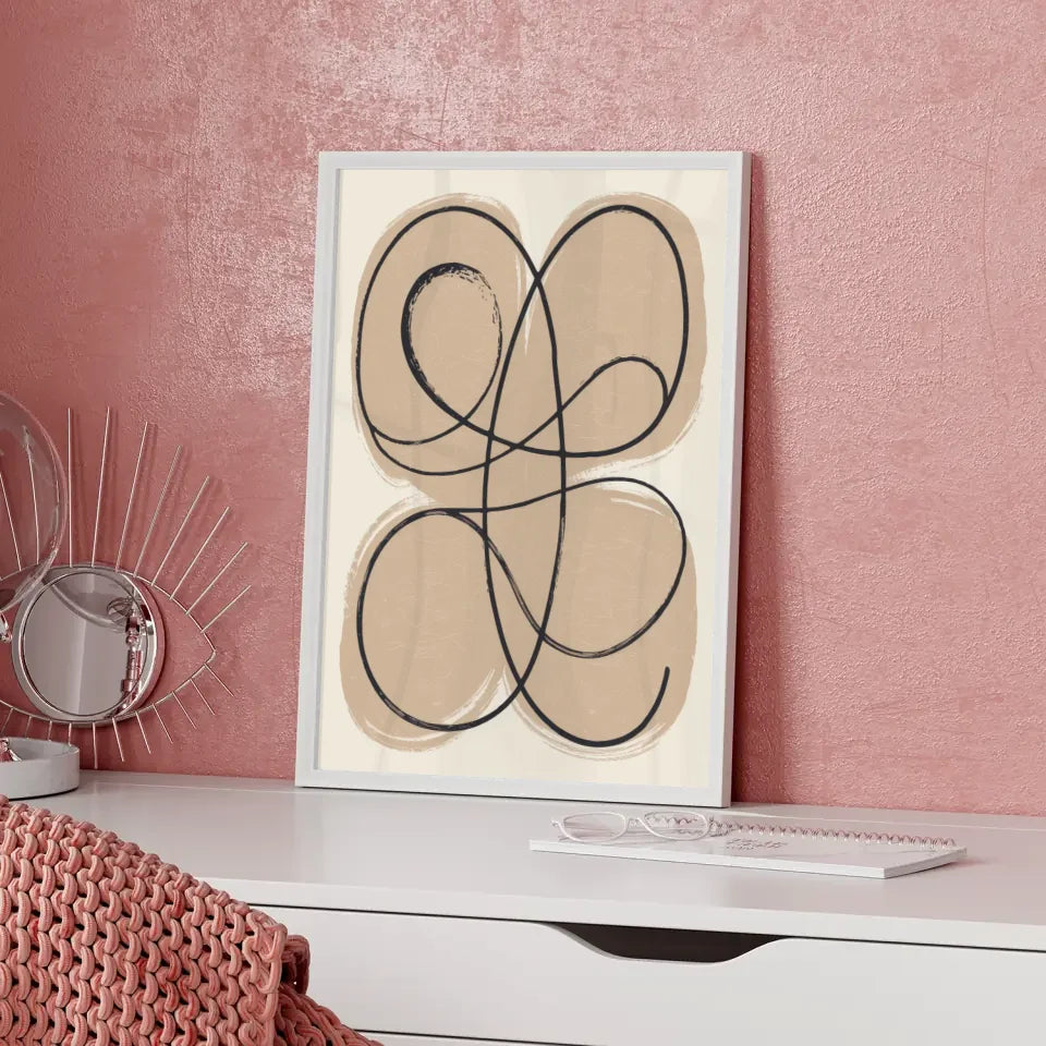 Abstraktes Poster mit geschwungenen Linien und ruhigem beigen Hintergrund