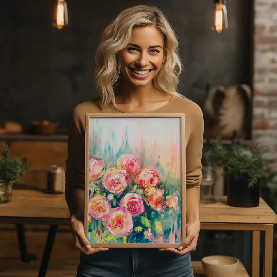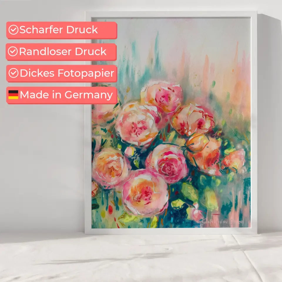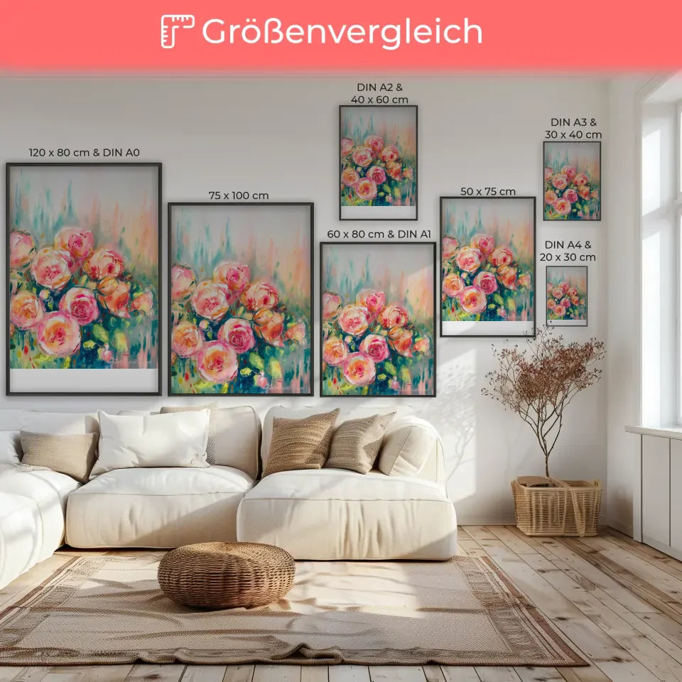 Bringen Sie mit unserem abstrakten Poster mit Rosen im Monet Stil Farbe und Leben in Ihre Räume. Ideal für Kunstliebhaber und alle, die ihren Wänden eine besondere Note verleihen möchten. Verpassen Sie nicht die Gelegenheit, dieses exklusive Poster zu erwerben und Ihre Einrichtung zu bereichern!