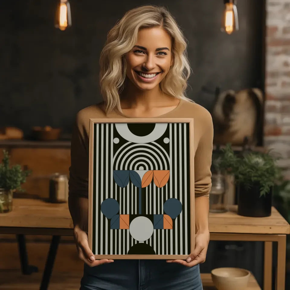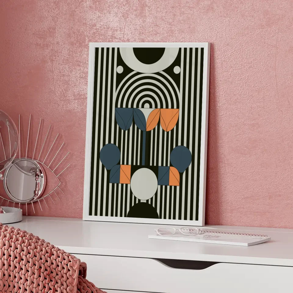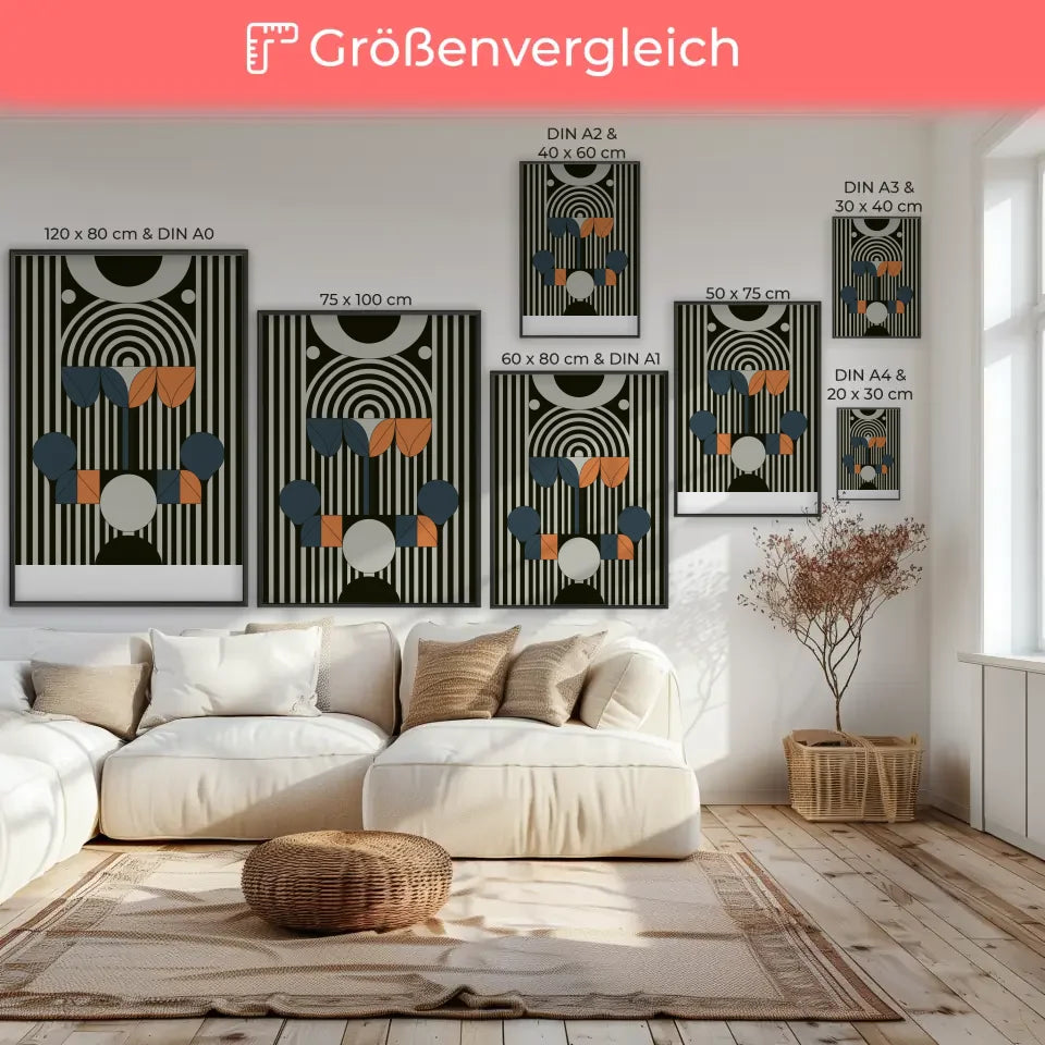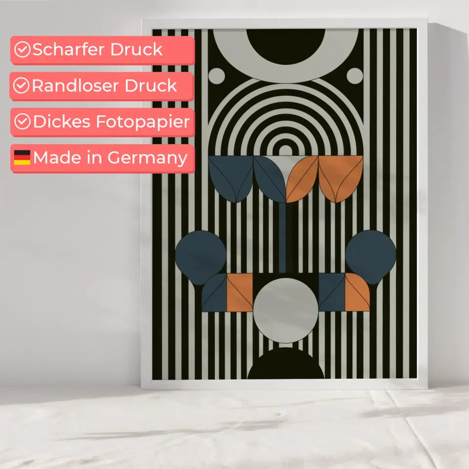 Entdecken Sie die Vielfalt der Abstrakten Kunst mit unserem hochwertigen Poster und bringen Sie zeitgenössischen Stil in Ihre Wände. Jedes Detail wird sorgfältig ausgearbeitet, um die Symmetrie und Modernität des Designs zu betonen. Lassen Sie sich inspirieren und gestalten Sie mit unserem abstrakten Poster eine einzigartige Atmosphäre in Ihrem Zuhause.