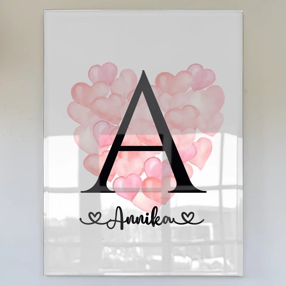 Acrylglas Bild Buchstabe A mit Ballonherzen für jeden Anlass