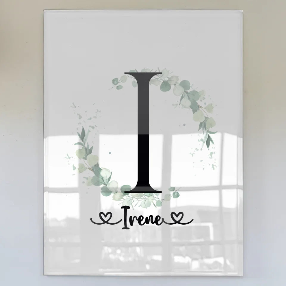 Acrylglas Bild Buchstaben I Eucalyptus Kranz personalisiert