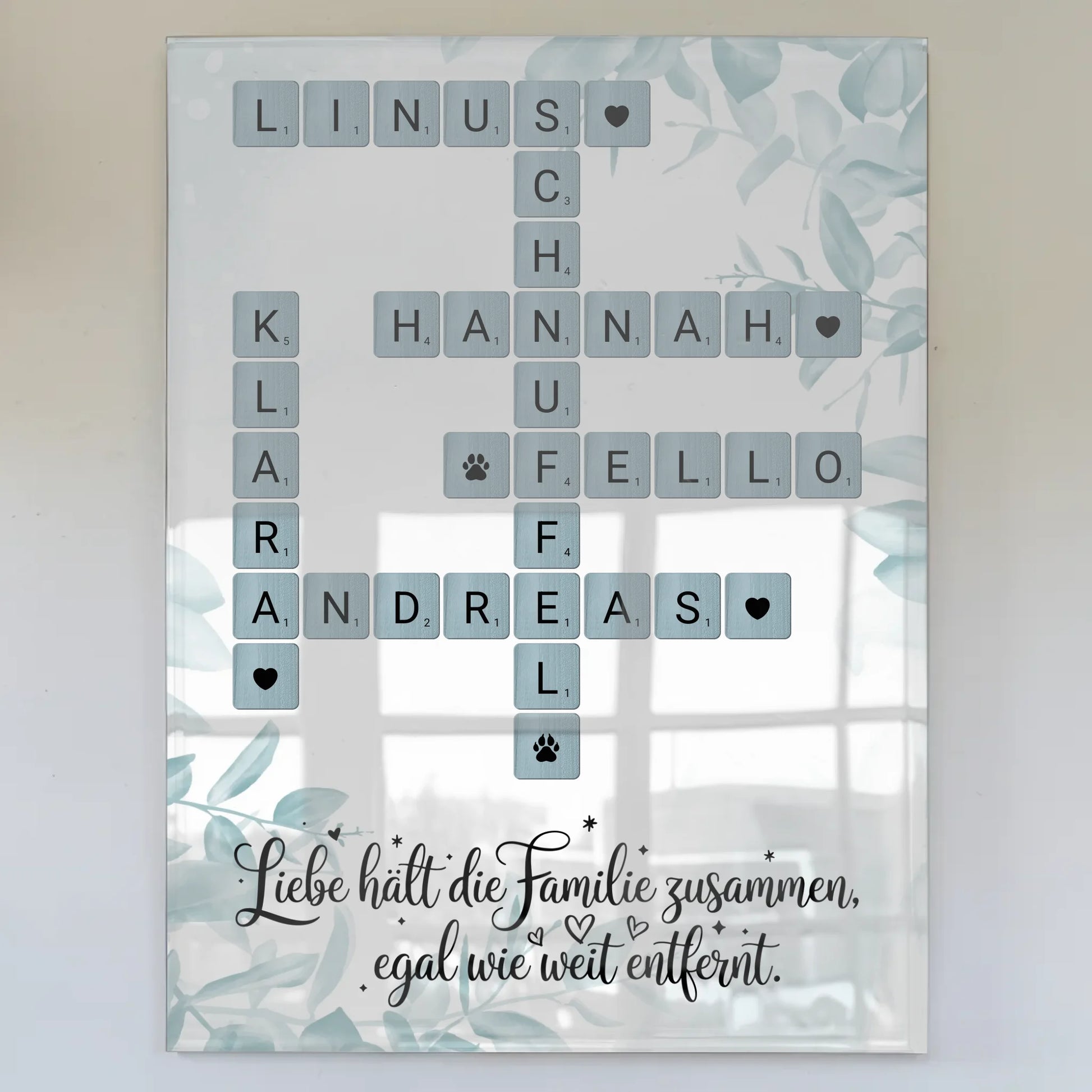 Acrylglas Bild Familie personalisiert Kreuzworträtsel Namen