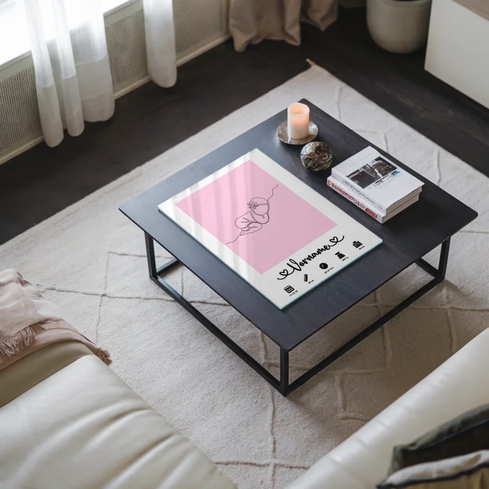 Das Acrylglas Bild Geburt Baby Schläft Lineart ist in einem zarten Hellrosa gehalten und fügt sich harmonisch in jedes Kinderzimmer ein. Es eignet sich hervorragend als Geschenk zur Geburt, zum ersten Geburtstag oder einfach zur Feier der lieben Kleinen. Überrasche frischgebackene Eltern oder zaubere einem kleinen Mädchen ein Lächeln ins Gesicht – mit diesem außergewöhnlichen, personalisierten Geschenk wirst du garantiert begeistern!