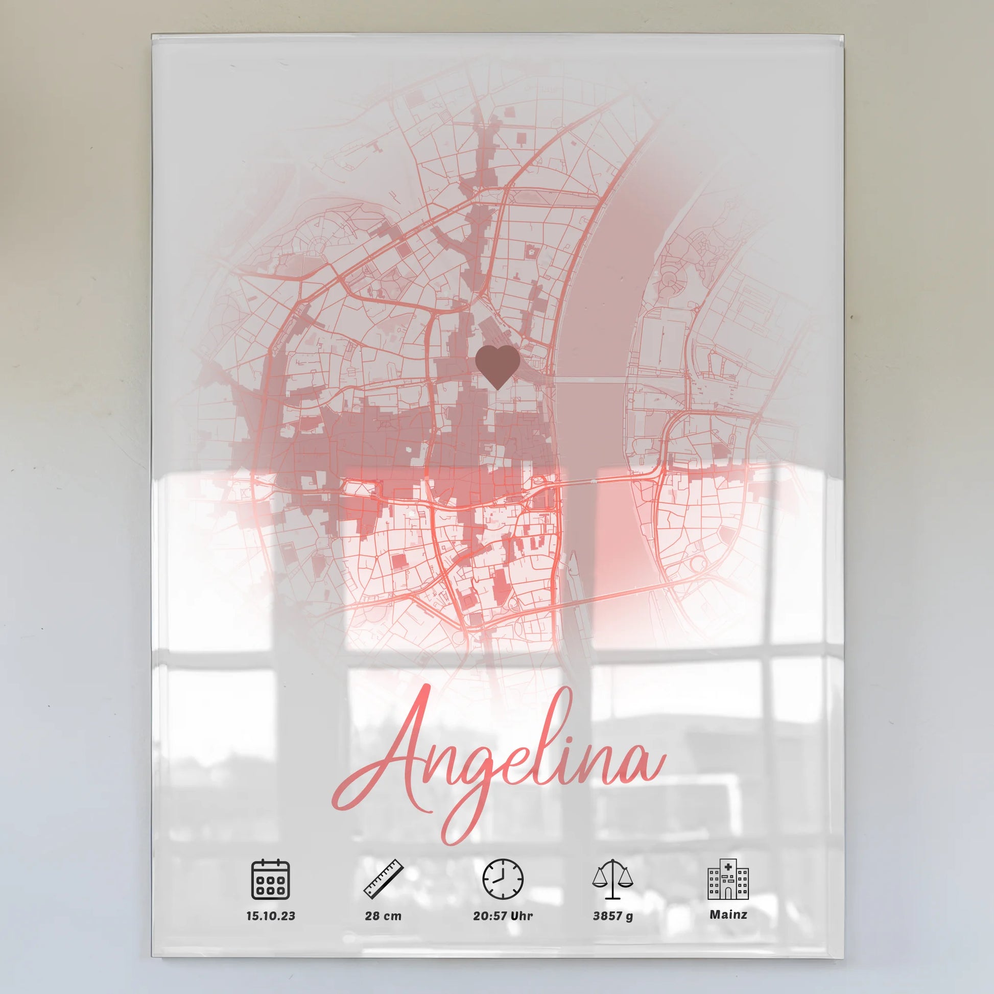 Bestelle jetzt dein persönliches Acrylglas Bild Geburt Stadt Karte Rund Rot mit Geburtsdaten Mädchen und kreiere ein einzigartiges Erinnerungsstück, das für immer in deinen Herzen bleibt.