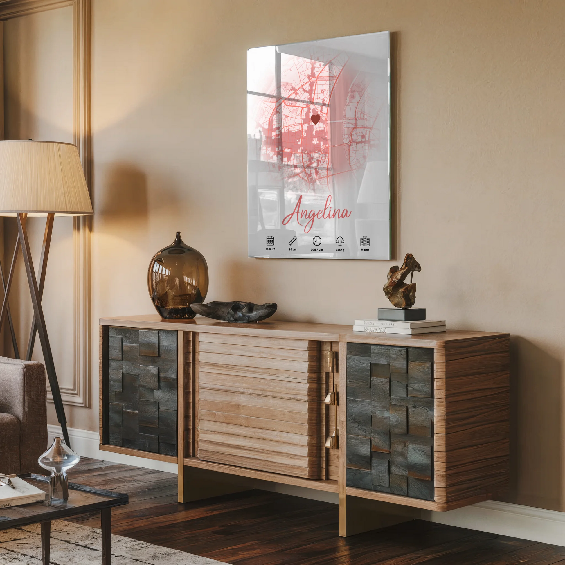 Gestalte das Acrylglas Bild individuell, indem du eine Karte mit einem besonderen Ort wählst, der für dich von Bedeutung ist. Ergänze die Geburtsdaten wie Gewicht, Größe, Uhrzeit und Datum sowie den Namen deines Mädchens. So entsteht ein einzigartiges Stück, das die Liebe und Freude über die Geburt deines Kindes perfekt widerspiegelt.