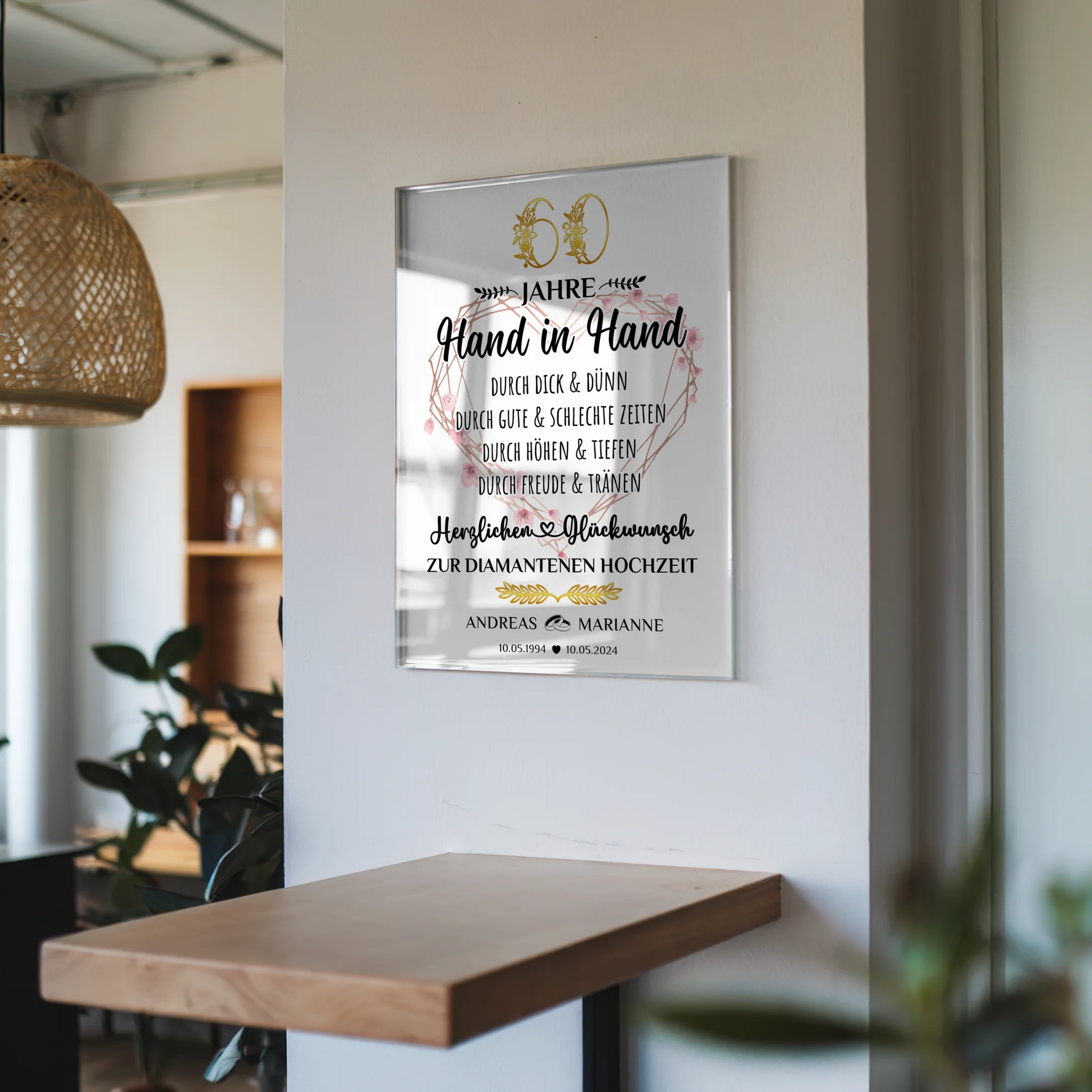 Acrylglas Bild Geschenk 60 Hochzeitstag zur Diamantene Hochzeit mit Namen