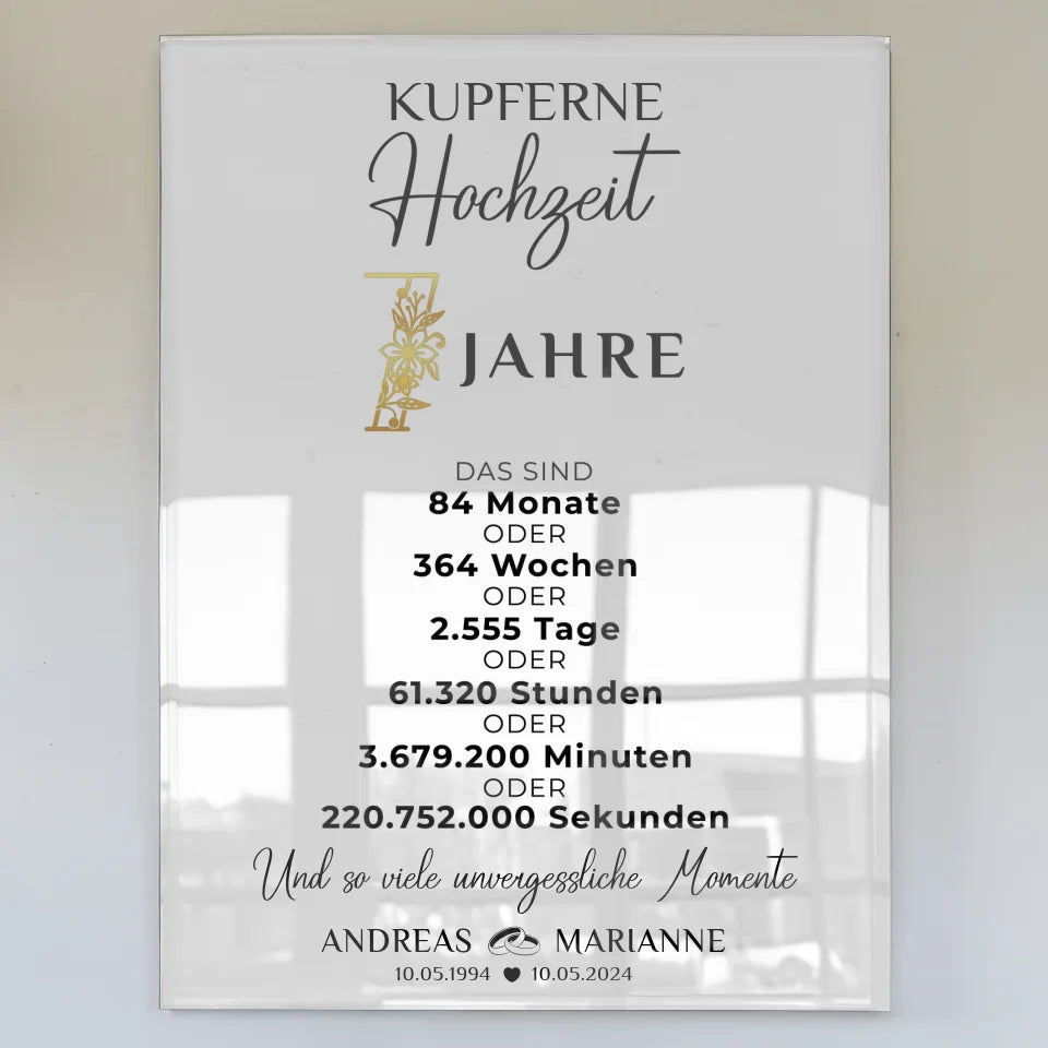 Acrylglas Bild Geschenk für 7 Hochzeitstag Momente zur Kupferne Hochzeit mit Namen