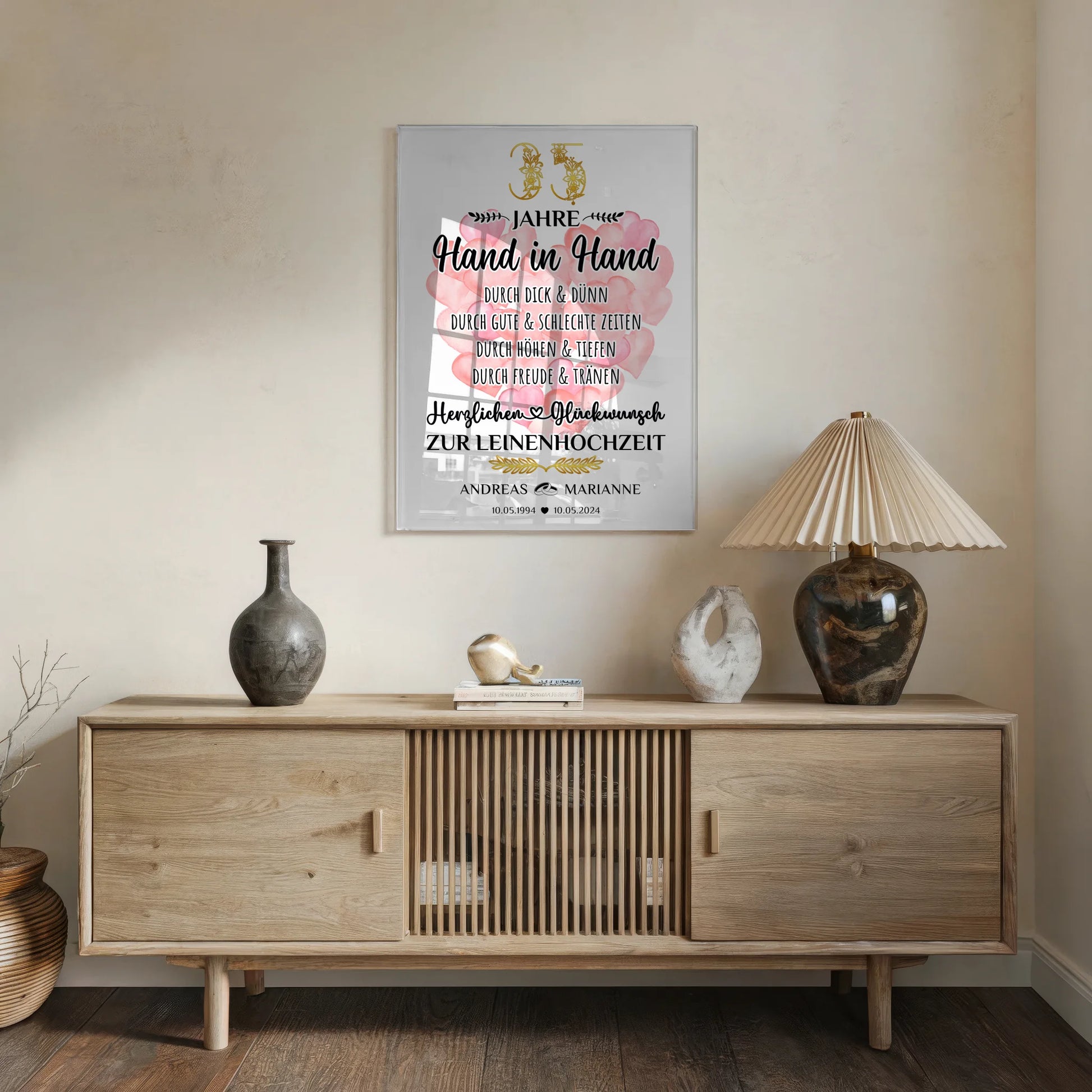 Acrylglas Bild Geschenk zur Leinenhochzeit 35 Hochzeitstag Mit Namen