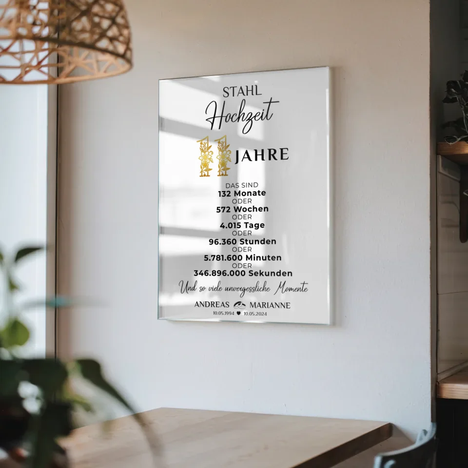 Acrylglas Bild Geschenk zur Stahlhochzeit 11 Hochzeitstag Namen