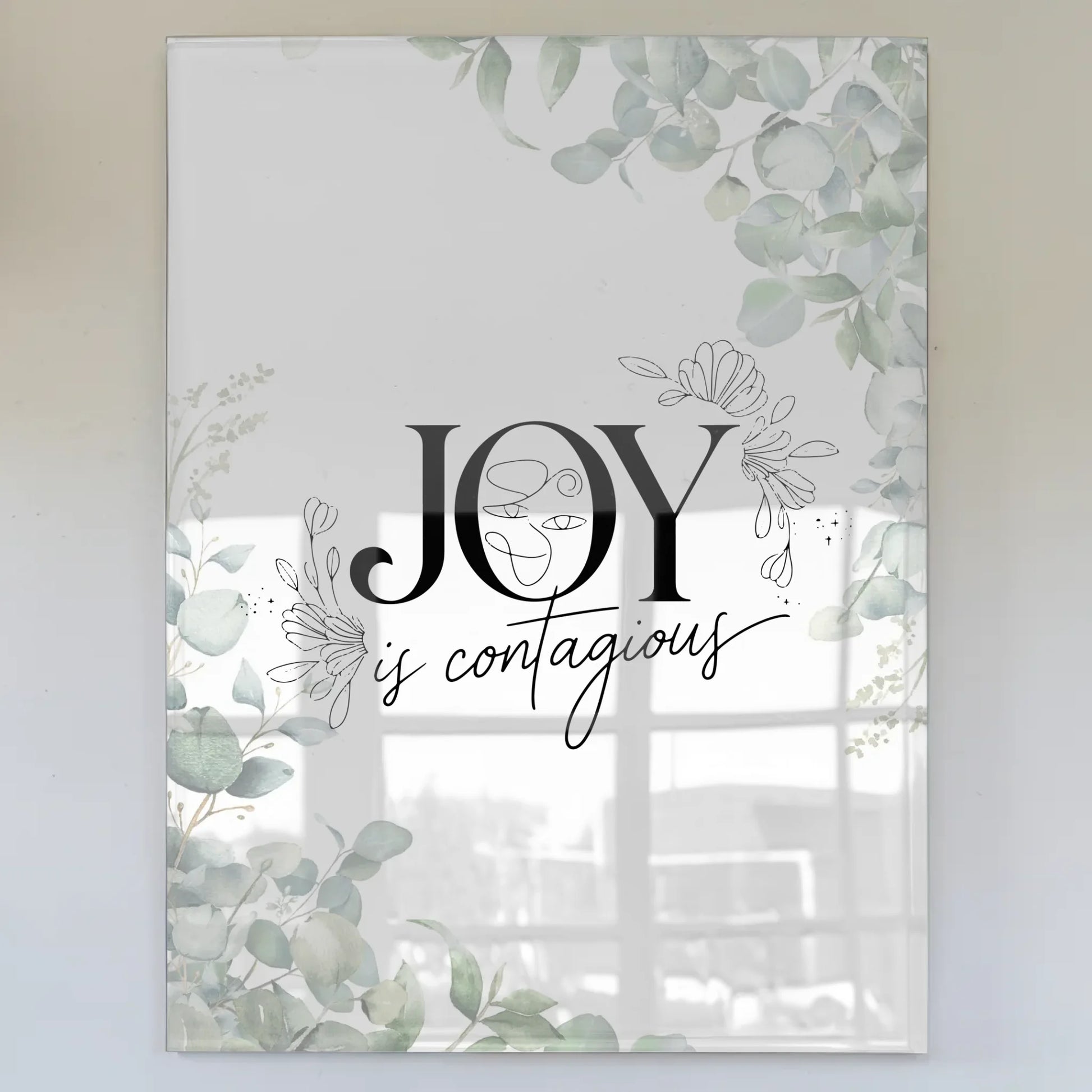 Entdecke das perfekte Geschenk fĂŒr jeden Anlass mit unserem Acrylglas Bild Joy is Contagious Personalisiertes Geschenk. Dieses einzigartige Kunstwerk kombiniert einen schönen Spruch mit der Möglichkeit, dein eigenes Hintergrundbild zu personalisieren. Lass dich von der positiven Energie und der Motivation inspirieren, die dieses Bild ausstrahlt.