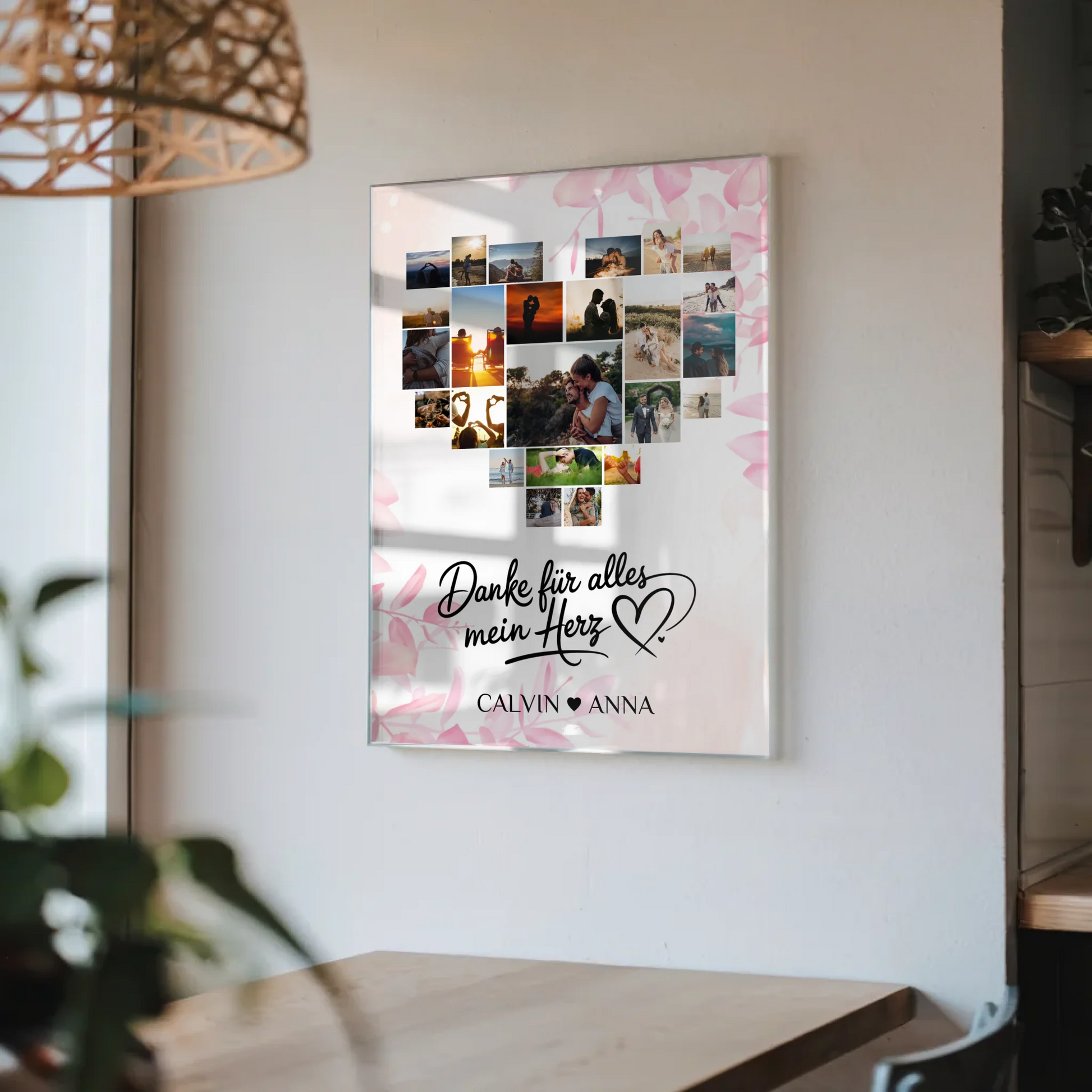 Überrasche deine Liebsten mit einem einzigartigen Geschenk, das von Herzen kommt! Unser Acrylglas Bild Liebe Fotocollage Danke Für Alles Herz ist die perfekte Möglichkeit, um 'Danke Für Alles Mein Herz' zu sagen. Dieses personalisierte Kunstwerk bietet dir die Möglichkeit, über 20+ Fotos, Namen, Datum und ein Hintergrundbild individuell anzupassen. Es ist das ideale Geschenk zum Valentinstag und wird garantiert für strahlende Augen sorgen.