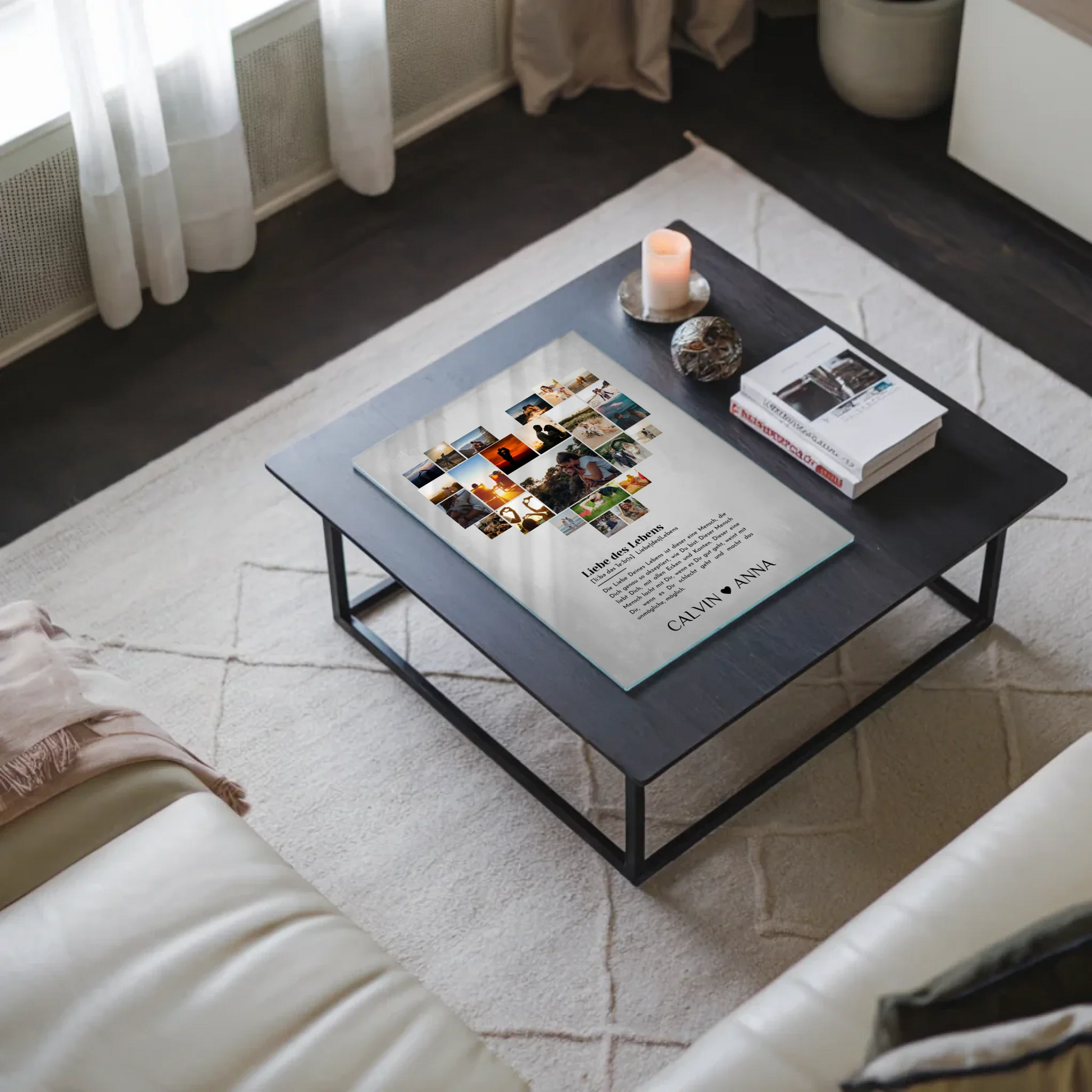 Entdecke das perfekte Geschenk für den Valentinstag mit unserem Acrylglas Bild Liebe Fotocollage Definition des Lebens. Dieses einzigartige Kunstwerk bietet dir die Möglichkeit, über 20+ Fotos, Namen, Datum und ein Hintergrundbild zu personalisieren. Es ist nicht nur ein wunderschönes Dekorationsstück, sondern auch eine liebevolle Erinnerung an besondere Momente.